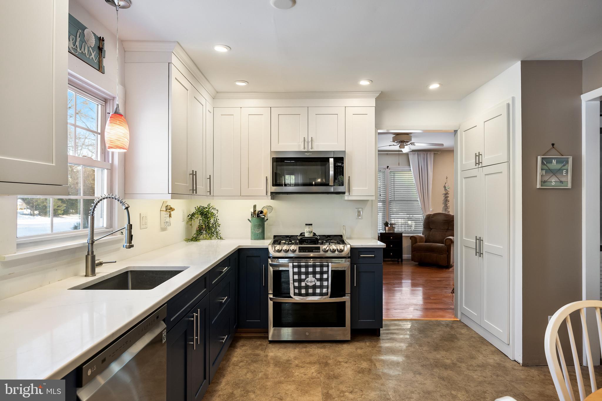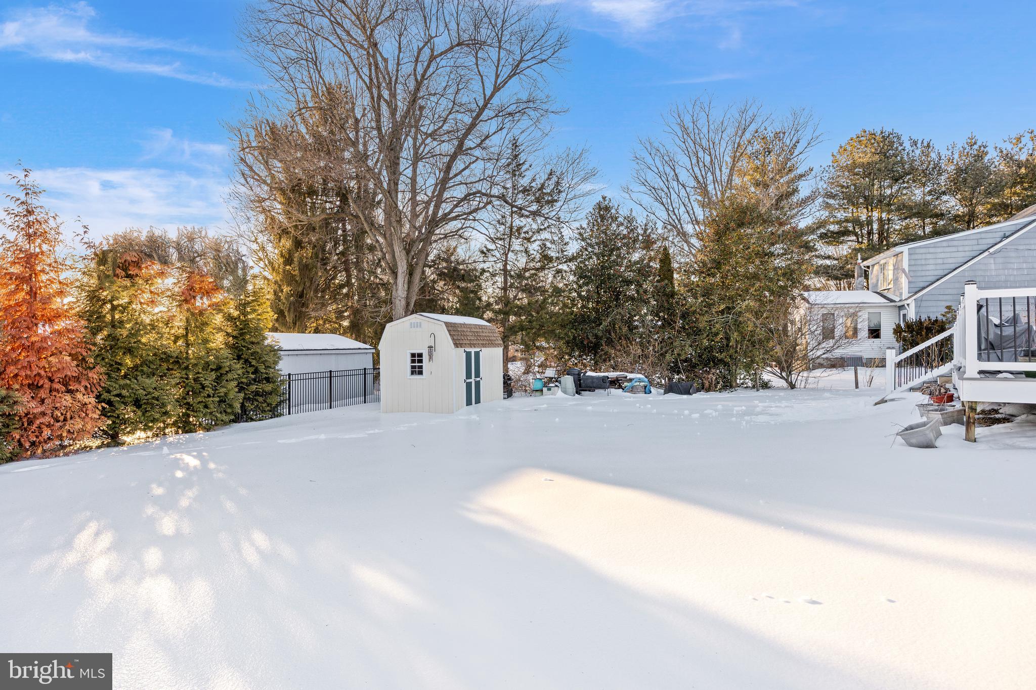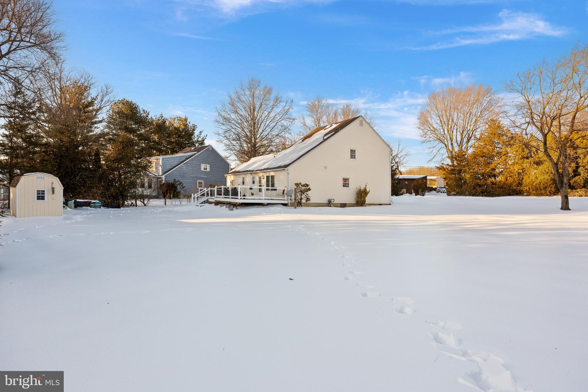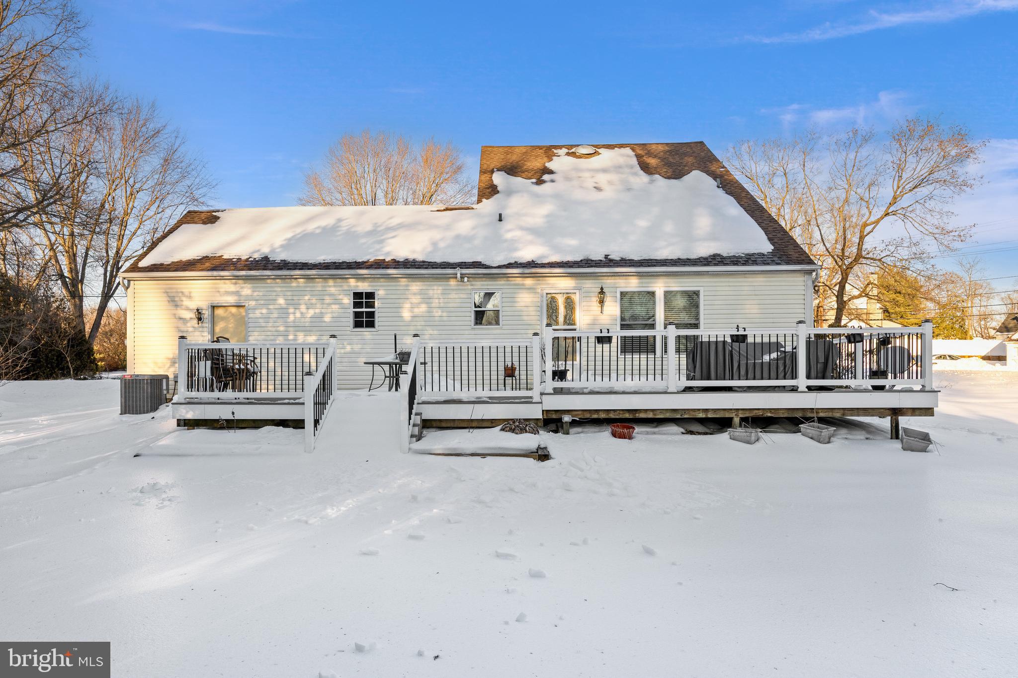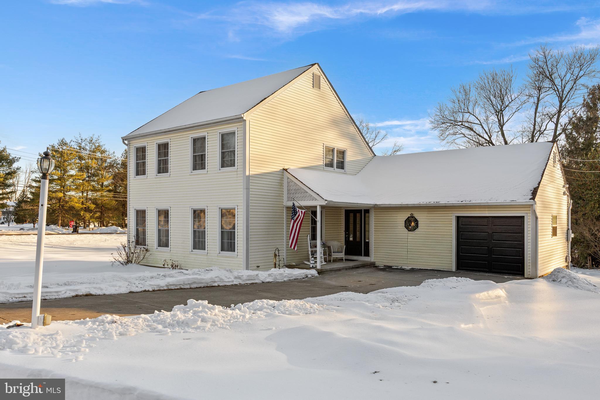 Welcome home to this charming Colonial, set on a generous corner lot just under half an acre and lovingly maintained by its owners for the last 47 years. Located in Delran (with a Moorestown P.O.), the home offers Delran taxes and Delran schools. A cheerful front porch, large driveway with plenty of parking, and one-car garage provide inviting curb appeal. Step inside to a welcoming foyer, with the living room just off the entry flowing seamlessly into the formal dining room, highlighted by classic wainscoting and chair rail detailing, perfect for hosting and entertaining. Many interior rooms have been freshly painted, adding a bright, move-in-ready feel throughout. The remodeled kitchen is a true standout, featuring shaker cabinetry, sleek quartz countertops, recessed lighting, stainless steel appliances, and a cozy breakfast area (plus, the Seller is including newer kitchen and foyer flooring to be installed post-closing). The family room offers wood flooring, custom built-in shelving, electric fireplace, and direct access to the newly redone Trex deck, ideal for relaxing or outdoor gatherings. Completing the main level is a laundry/utility room and an updated half bath. Upstairs, you'll find three generously sized bedrooms and a full bath with a walk-in shower and glass doors. Additional highlights include HVAC (2018), a newer garage door, walk-in attic storage, and a storage shed. Conveniently located near Rt. 130, I-295, and major highways, this home provides easy access to shopping, dining, and entertainment. With its close proximity to Philadelphia, you'll experience the best of suburban living with city amenities just a short drive away. Don't miss your opportunity to make this yours!