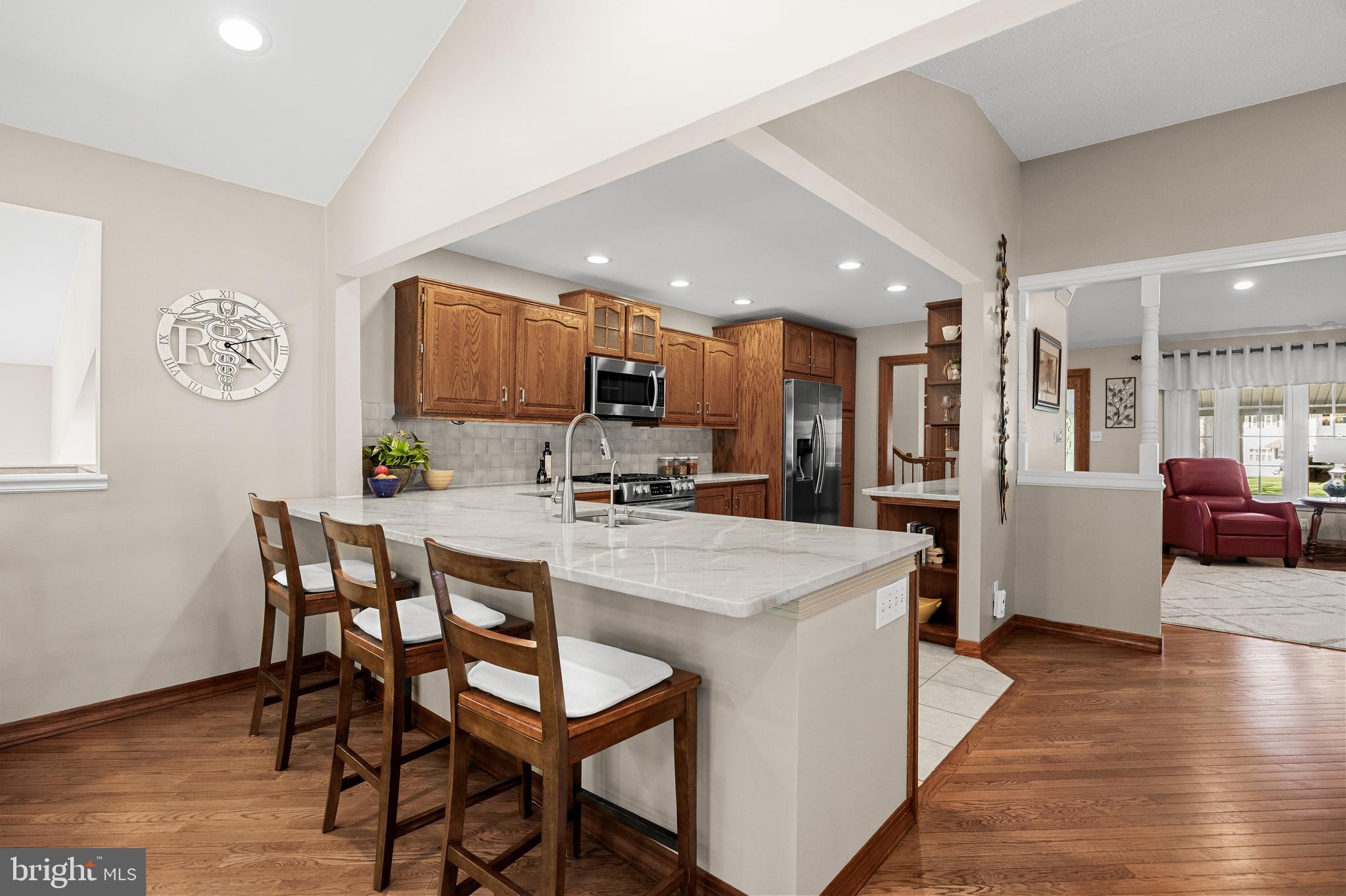 Fall in love with 108 Wedgewood Drive... this immaculately maintained, expanded home features 3 bedrooms, 2.5 updated baths, nearly 2,400 sq ft of living space that includes an incredible addition, a 1-car garage, basement, and a large 350 sq ft tool shed. Perfectly nestled on a picturesque lot in the desirable "Rolling Greens" of Cinnaminson, this property is set back and trimmed with gorgeous greenery, creating a truly private oasis. Not to mention, it's just minutes from the Riverton Country Club and a 13-minute drive to Philadelphia for an easy commute or dinner in town. Cherished by the same homeowner for nearly 40 years, this home radiates comfort, cleanliness, and pride of ownership, ready for the next owner to enjoy and make their own. Approaching the home, the generously long driveway leads you to either the inviting covered front porch, perfect for enjoying your morning coffee or two side door entries with stamped concrete that wraps around to the back patio. This is even more impressive at night when illuminated with the gorgeous landscape lighting! Enter the upgraded front door with a side window panel into a tiled foyer that opens to a bright, neutral living room. This room features recessed lighting, newer crank-out windows, and gleaming hardwood flooring (thoughtfully installed on a diagonal), which continues through the dining area and spacious family room addition. Adjacent is the updated kitchen, which is open to the dining and family rooms. It offers wood cabinetry, modern quartzite countertops, a tile backsplash, and stainless steel appliances, including a gas stove. The breakfast bar, which seats four, is perfect for everyday living and entertaining. It overlooks the sunlit family room addition that is truly a standout feature unique to this home and perfect for entertaining large family gatherings year-round. Surrounded by Andersen windows and a sliding glass door, natural sunlight pours in while showcasing the gorgeous tree-lined backyard, seamlessly bringing the beauty of the outdoors inside. The sliding door provides direct access to the patio, which features a retractable awning for enjoying summer grilling and entertaining, and a large, partially fenced area, making it easy for little ones or dogs to run around in a confined space. The lower level offers even more living space, featuring a generously sized family room with recessed lighting, Andersen windows, neutral paint, and tile flooring. From here, you'll find access to one of the cleanest garages you'll ever see, the side driveway entrance, and the basement. A partial basement provides additional flexibility for storage, hobbies, a home office, or a gym. It also includes a separate laundry area with a long countertop for folding and ample room to hang clothes, making laundry a breeze! Upstairs, the primary suite includes neutral carpeting and paint, a ceiling fan, double closets, and a newly remodeled en-suite bath with a large walk-in shower and glass door. Two additional bedrooms with neutral paint, carpet, and ceiling fans, along with a large updated full bath complete the upper level. Conveniently located near Route 130, shopping, Cinnaminson schools, Riverton Country Club, and just a short drive to Philadelphia. Additional highlights include: a roof approximately 9 years old, HVAC approximately 7 years old, a hot water heater approximately 6 months old, a newer garage door, hard- wired alarm system with every door and lower level window wired, and 6-panel doors throughout. This home truly reflects pride of ownership in each and every thoughtful detail throughout. Make this special home your own and enjoy everything it has to offer for years to come. An absolute gem!
