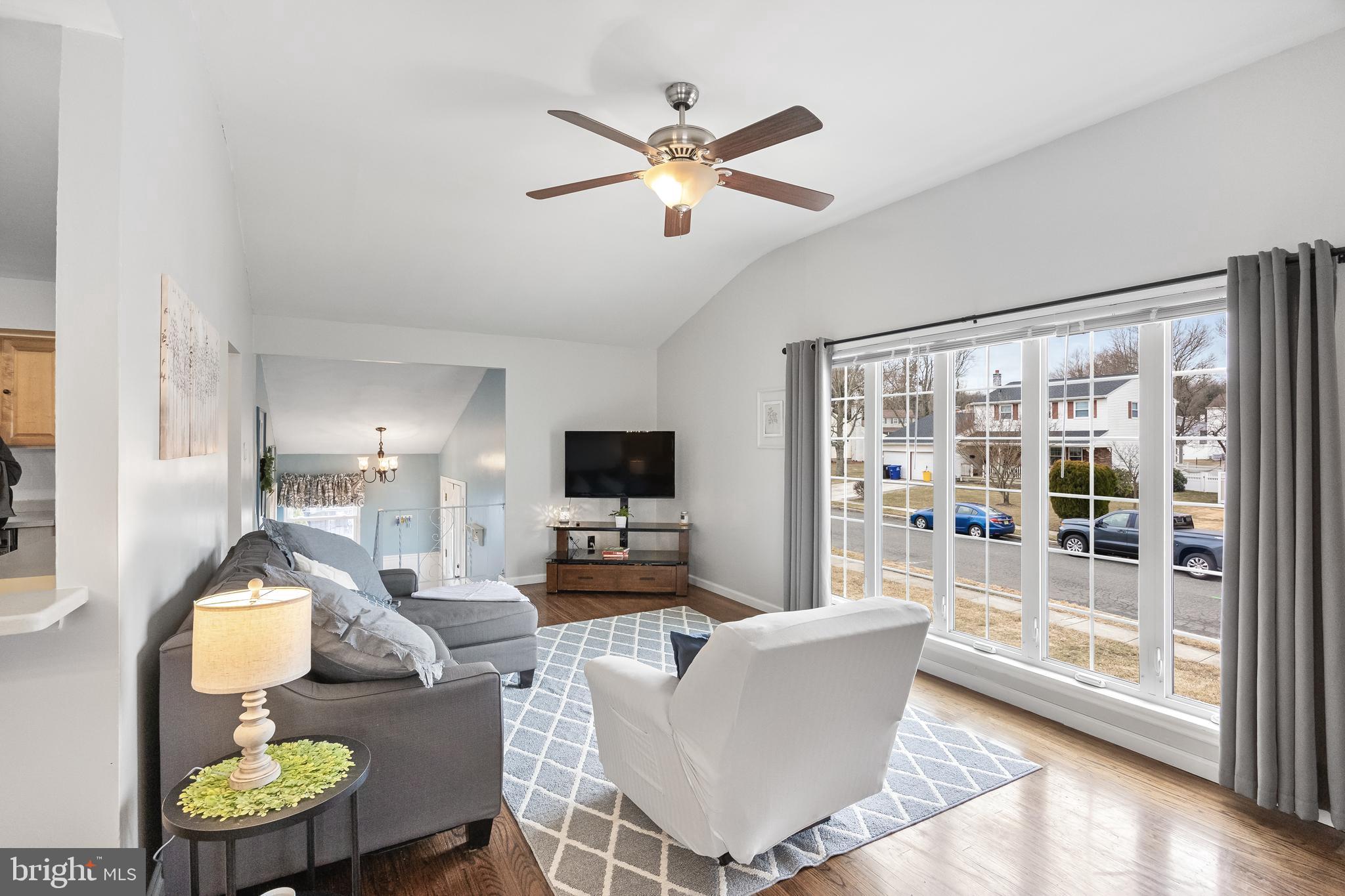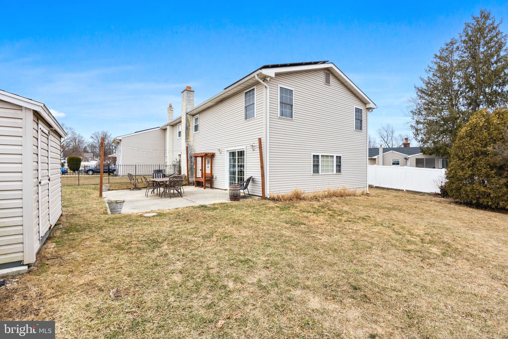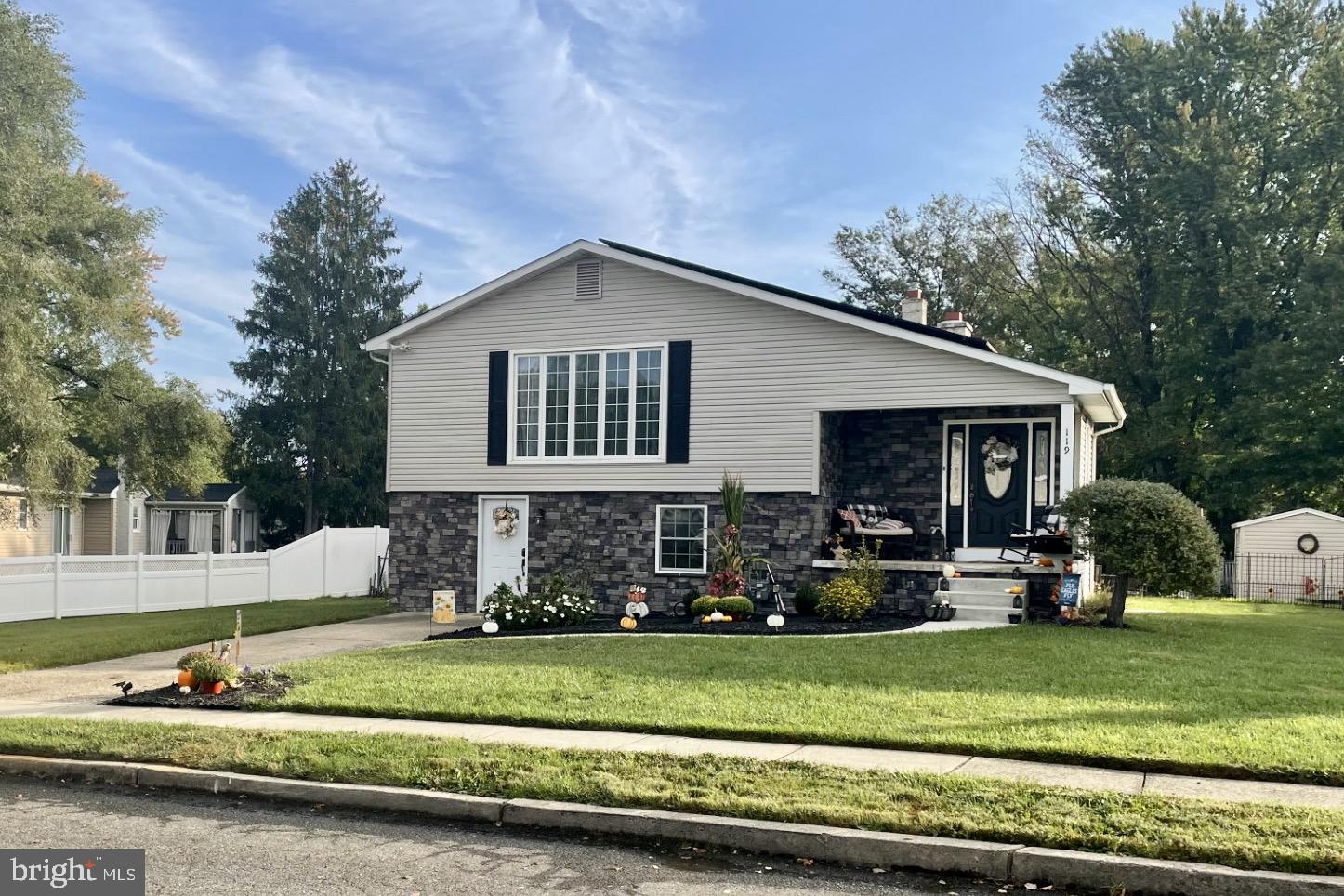 **Please submit your highest and best offer by Monday, March 17th at 3pm.** Welcome home to this beautifully EXPANDED 4 bedroom, 2.5-bath home with over 3,300 sq ft, which includes a Primary Suite ADDITION, Spa Bath EXPANSION, and 2nd Family Room ADDITION! There is plenty of room to spread out! The well-manicured front yard and inviting front porch warmly welcome you to this lovingly maintained home. Step inside to find formal living and dining rooms with hardwood flooring, neutral paint, and high ceilings, that opens seamlessly to the kitchen. Recently updated, the Kitchen offers wood cabinetry, neutral Corian countertops that is extra spacious and includes a breakfast bar for 2, subway tile backsplash, and stainless steel appliances. Heading down the hall, the spacious primary suite is a true retreat, offering two walk-in closets and a fully remodeled en-suite Spa bath complete with a large walk-in tiled shower, soaking tub, and double vanity. Three additional generously sized bedrooms share a beautifully remodeled full bath. Moving downstairs is an entertainer's dream! It offers a family room with a stone fireplace, large recreation room addition, and two sliding doors leading to the backyard. The bonus second kitchen makes hosting gatherings effortless. A laundry room, half bath, and storage room complete this level. Additional features include: newer HVAC system (approx. 4 years old), upgraded 200-amp electrical service, main kitchen countertops and backsplash installed fall of 2024, and OWNED Solar Panels - PSE&G bills averaging just $76.30/month! Don't miss this incredible opportunity to own a spacious, move-in-ready home in a fantastic location! Just minutes from schools, local soccer fields, and major routes including Rt. 130, I-295, and Philadelphia, this home is a must-see! Schedule your showing today.