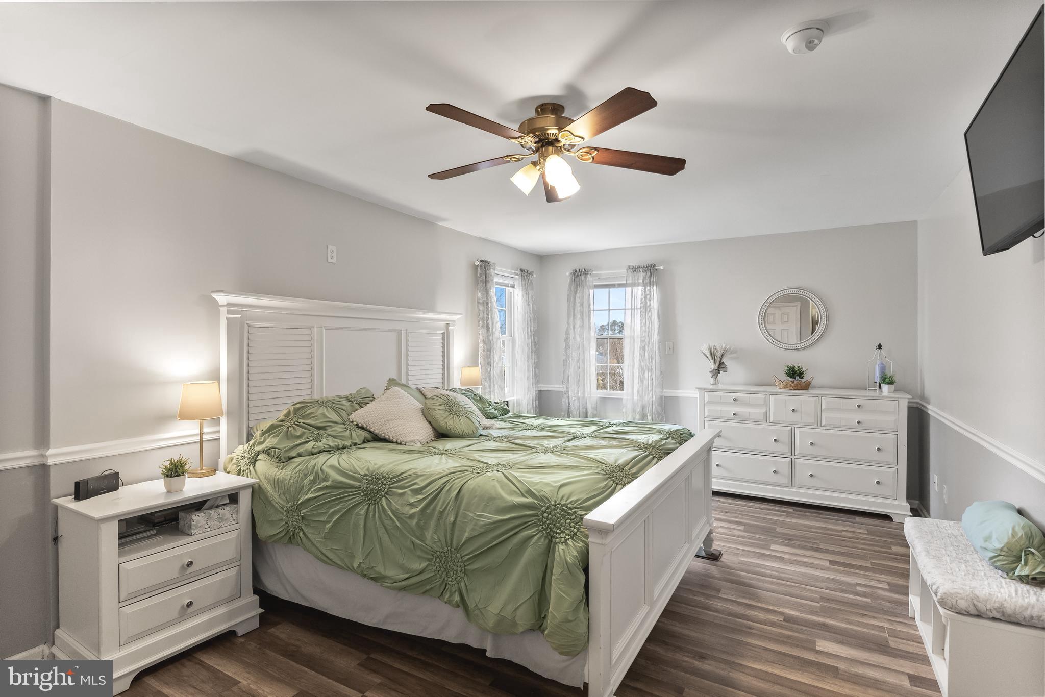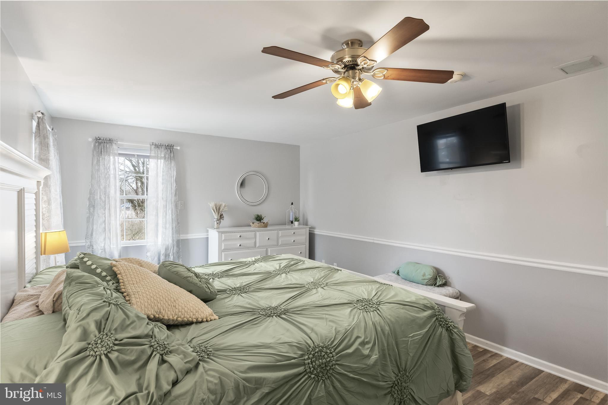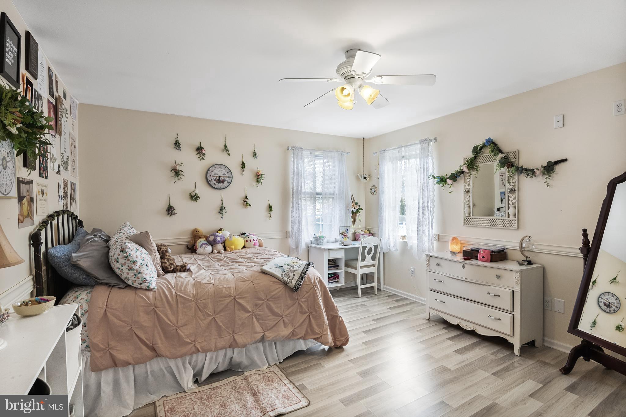 **Please submit your highest and best offer by Monday, March 17th at 3pm.** Welcome home to this beautifully EXPANDED 4 bedroom, 2.5-bath home with over 3,300 sq ft, which includes a Primary Suite ADDITION, Spa Bath EXPANSION, and 2nd Family Room ADDITION! There is plenty of room to spread out! The well-manicured front yard and inviting front porch warmly welcome you to this lovingly maintained home. Step inside to find formal living and dining rooms with hardwood flooring, neutral paint, and high ceilings, that opens seamlessly to the kitchen. Recently updated, the Kitchen offers wood cabinetry, neutral Corian countertops that is extra spacious and includes a breakfast bar for 2, subway tile backsplash, and stainless steel appliances. Heading down the hall, the spacious primary suite is a true retreat, offering two walk-in closets and a fully remodeled en-suite Spa bath complete with a large walk-in tiled shower, soaking tub, and double vanity. Three additional generously sized bedrooms share a beautifully remodeled full bath. Moving downstairs is an entertainer's dream! It offers a family room with a stone fireplace, large recreation room addition, and two sliding doors leading to the backyard. The bonus second kitchen makes hosting gatherings effortless. A laundry room, half bath, and storage room complete this level. Additional features include: newer HVAC system (approx. 4 years old), upgraded 200-amp electrical service, main kitchen countertops and backsplash installed fall of 2024, and OWNED Solar Panels - PSE&G bills averaging just $76.30/month! Don't miss this incredible opportunity to own a spacious, move-in-ready home in a fantastic location! Just minutes from schools, local soccer fields, and major routes including Rt. 130, I-295, and Philadelphia, this home is a must-see! Schedule your showing today.