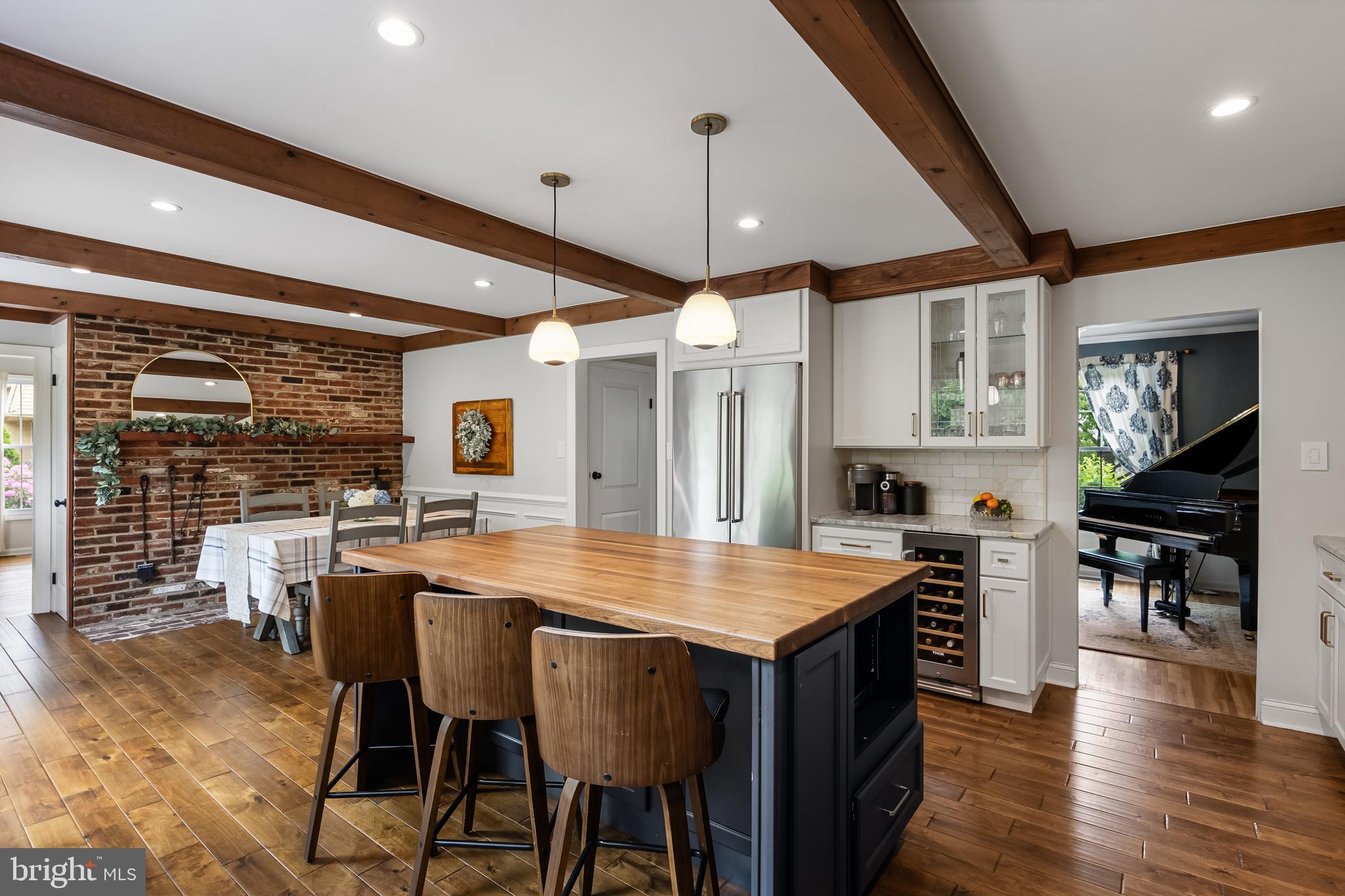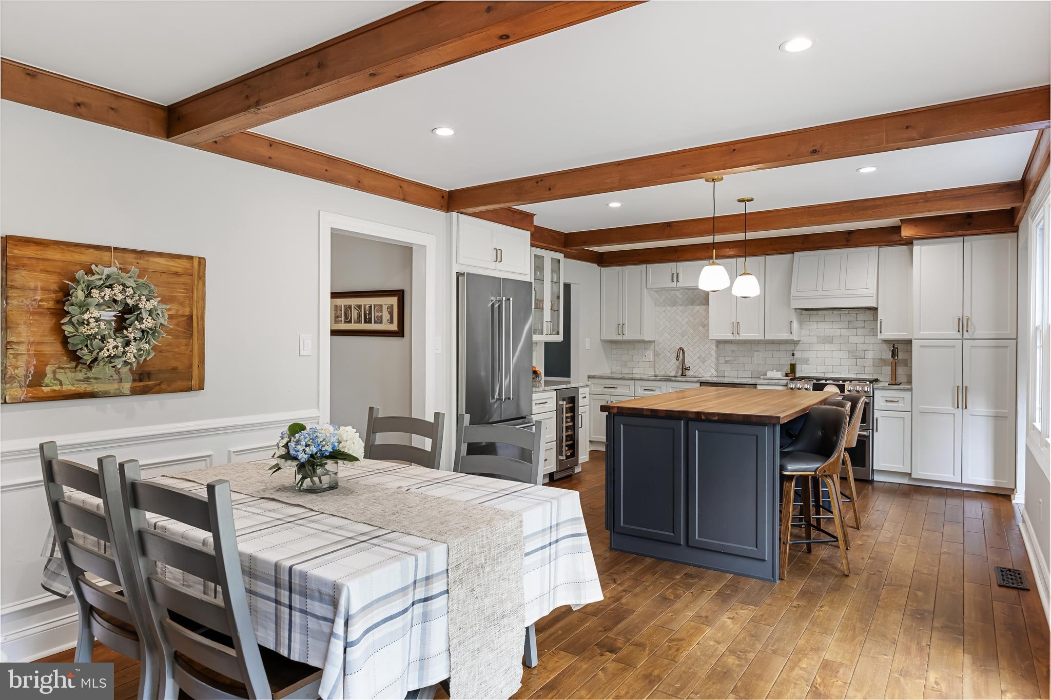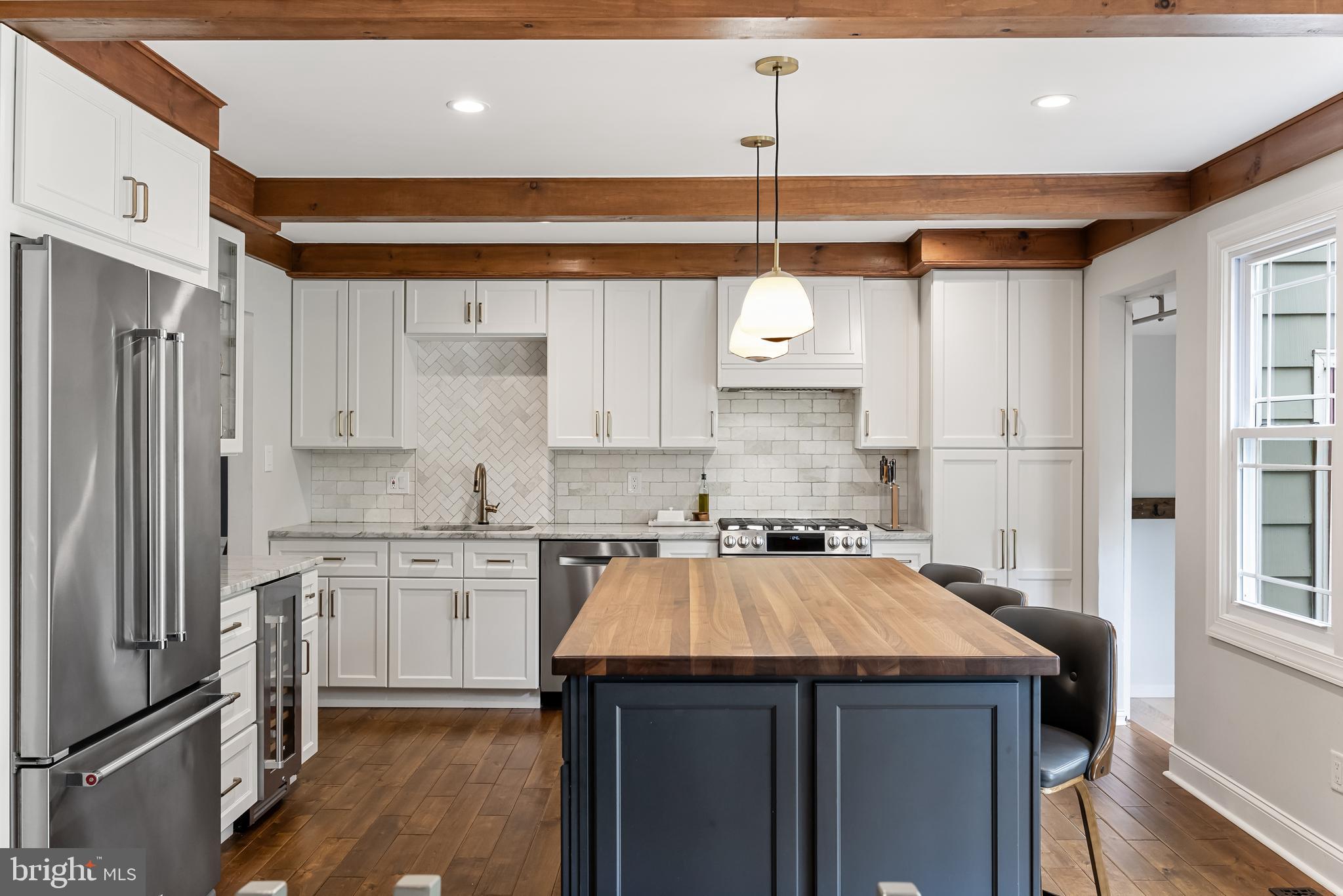 Fall in love with this exceptional 4 bedroom, 2.5 bath Colonial home with 2-car garage and finished basement, nestled on a premium cul-de-sac lot that backs to historic Old Pinehurst Farm in desirable Moorestown. This turn-key home boasts MANY upgrades and beautiful features throughout, one of which is the incredible Kitchen remodel. The heart of the home was thoughtfully designed and exquisitely constructed, boasting a beamed ceiling, custom center island with walnut top and seating for 3, gorgeous granite countertops, modern white shaker cabinetry, stainless steel appliances that include a double oven and gas stove top, and dining area with cozy double-sided brick wood-burning fireplace that can also be enjoyed in the living room. The oversized living room streams in lots of natural sunlight and offers newer recessed lighting, crown molding, hardwood flooring, and built-in bookshelves. Adjacent is the updated half bath and dining room that is currently being used as the piano room, featuring hardwood flooring, updated modern chandelier, and custom moldings. Completing the first floor is the updated laundry room with newer flooring, cabinetry, washer, dryer, utility tub, and modern barn door to separate it from the kitchen. Downstairs offers a finished basement with a huge living area that offers newer carpeting, built-in bookcases and toy box benches, storage room, and updated home office with newer flooring. The upstairs level of the home boasts a private primary ensuite with hardwood flooring, walk-in closet, and remodeled bath with modern style, featuring a walk-in tile shower and modern fixtures. Last, but certainly not least, is the gorgeous backyard that is an oasis for relaxation and entertainment, featuring a newer Trex deck (2018), bluestone fire pit patio (2021), and kids' playhouse (2020). Additional highlights include newer windows throughout (2020), HVAC system (2017), interior doors (2018), and irrigation system. Conveniently located within walking distance to Roberts School, Memorial Fields, and Moorestown's treasured Main Street with quaint shops and boutiques and a variety of favorite restaurants. And be sure not to miss the many annual parades, arts and business events throughout the course of the year that march through this adoring town. What a great opportunity to make this dream home, 125 Somers Court S, yours and enjoy all that it has to offer. This home truly is the epitome of comfort and elegance where every detail reflects pride of ownership and meticulous care. An absolute gem!