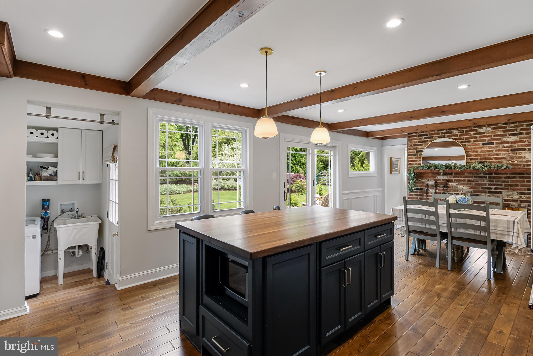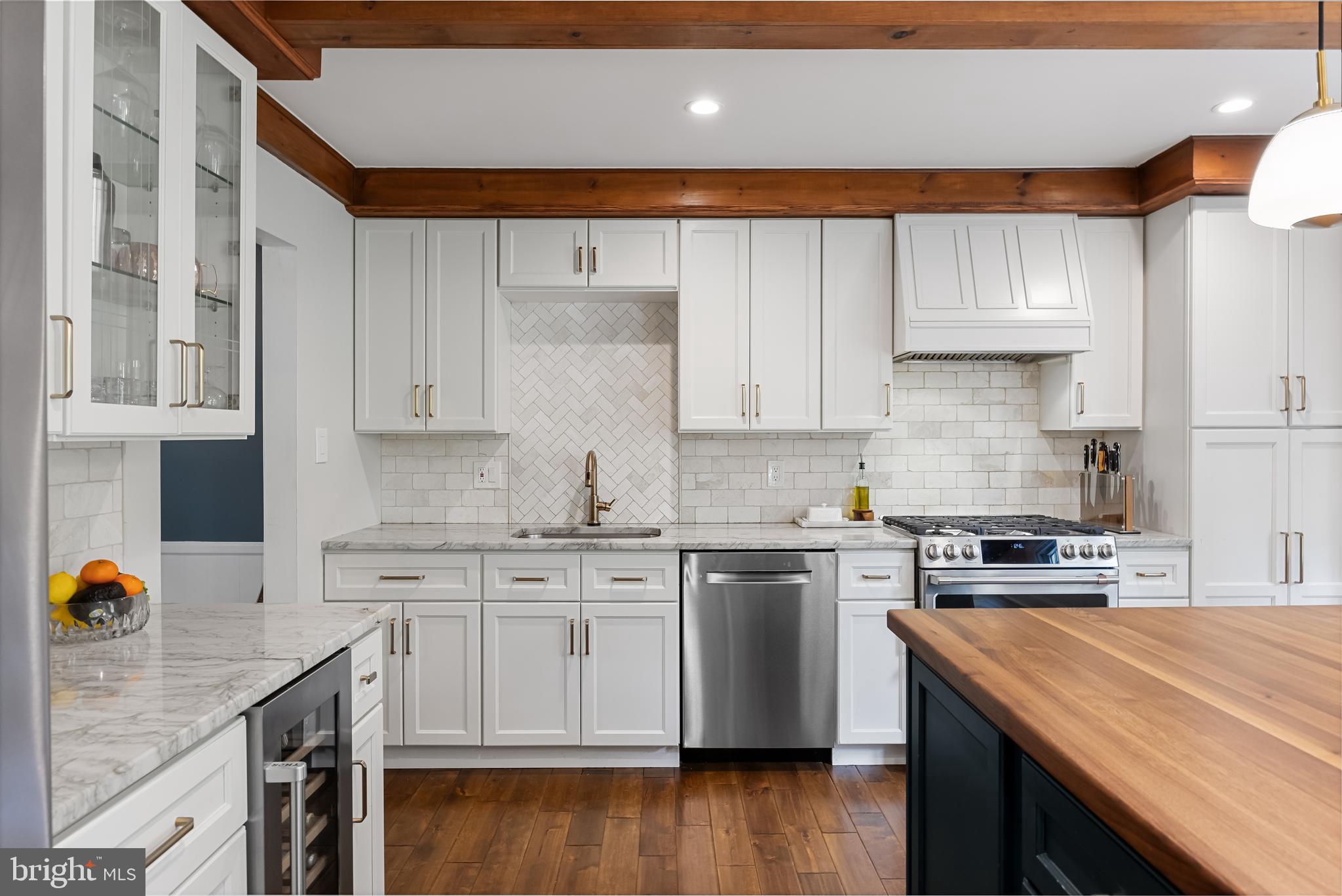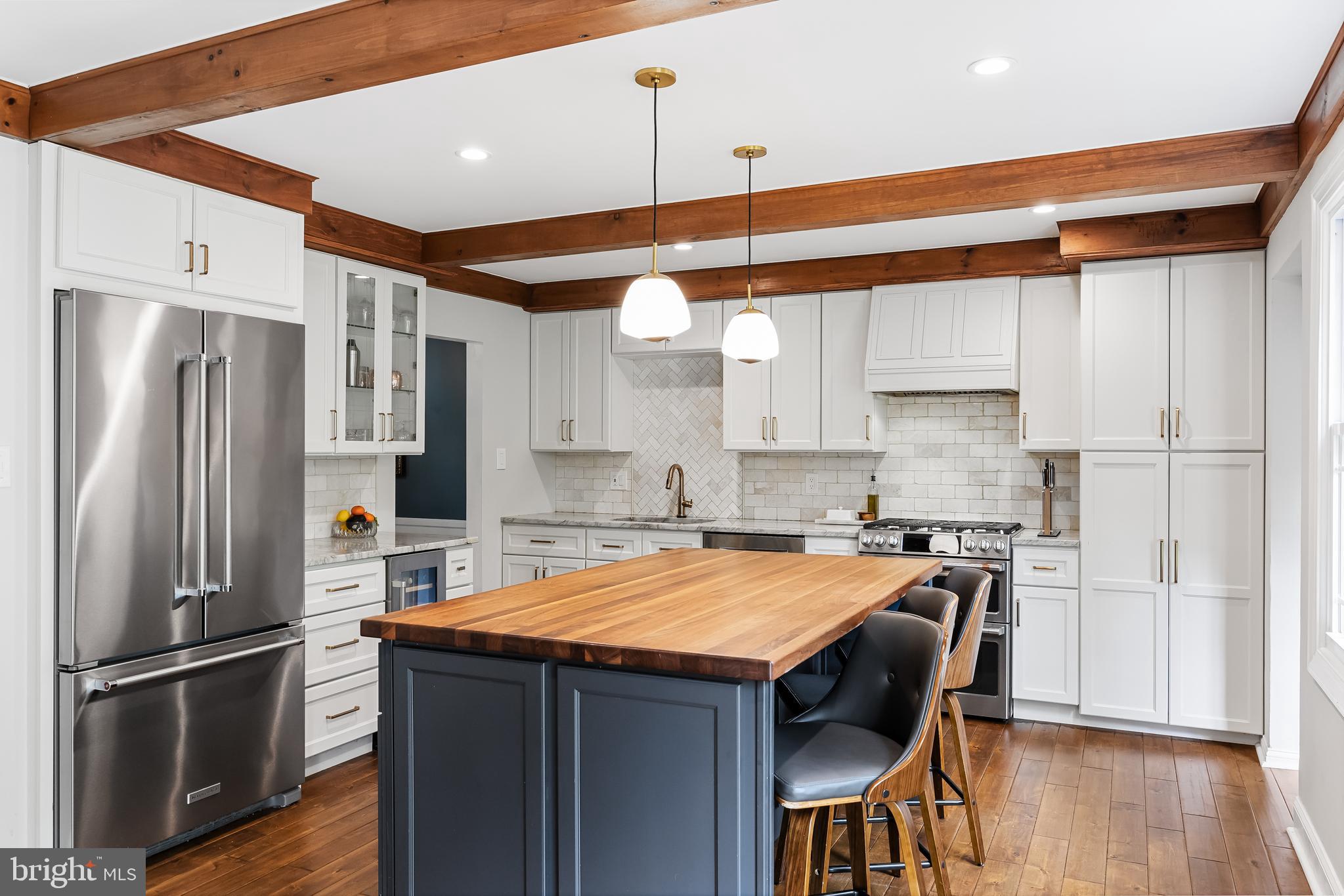 Fall in love with this exceptional 4 bedroom, 2.5 bath Colonial home with 2-car garage and finished basement, nestled on a premium cul-de-sac lot that backs to historic Old Pinehurst Farm in desirable Moorestown. This turn-key home boasts MANY upgrades and beautiful features throughout, one of which is the incredible Kitchen remodel. The heart of the home was thoughtfully designed and exquisitely constructed, boasting a beamed ceiling, custom center island with walnut top and seating for 3, gorgeous granite countertops, modern white shaker cabinetry, stainless steel appliances that include a double oven and gas stove top, and dining area with cozy double-sided brick wood-burning fireplace that can also be enjoyed in the living room. The oversized living room streams in lots of natural sunlight and offers newer recessed lighting, crown molding, hardwood flooring, and built-in bookshelves. Adjacent is the updated half bath and dining room that is currently being used as the piano room, featuring hardwood flooring, updated modern chandelier, and custom moldings. Completing the first floor is the updated laundry room with newer flooring, cabinetry, washer, dryer, utility tub, and modern barn door to separate it from the kitchen. Downstairs offers a finished basement with a huge living area that offers newer carpeting, built-in bookcases and toy box benches, storage room, and updated home office with newer flooring. The upstairs level of the home boasts a private primary ensuite with hardwood flooring, walk-in closet, and remodeled bath with modern style, featuring a walk-in tile shower and modern fixtures. Last, but certainly not least, is the gorgeous backyard that is an oasis for relaxation and entertainment, featuring a newer Trex deck (2018), bluestone fire pit patio (2021), and kids' playhouse (2020). Additional highlights include newer windows throughout (2020), HVAC system (2017), interior doors (2018), and irrigation system. Conveniently located within walking distance to Roberts School, Memorial Fields, and Moorestown's treasured Main Street with quaint shops and boutiques and a variety of favorite restaurants. And be sure not to miss the many annual parades, arts and business events throughout the course of the year that march through this adoring town. What a great opportunity to make this dream home, 125 Somers Court S, yours and enjoy all that it has to offer. This home truly is the epitome of comfort and elegance where every detail reflects pride of ownership and meticulous care. An absolute gem!