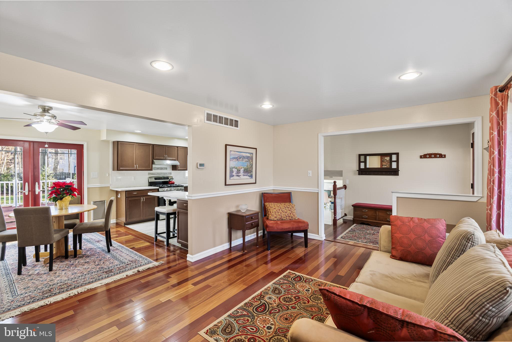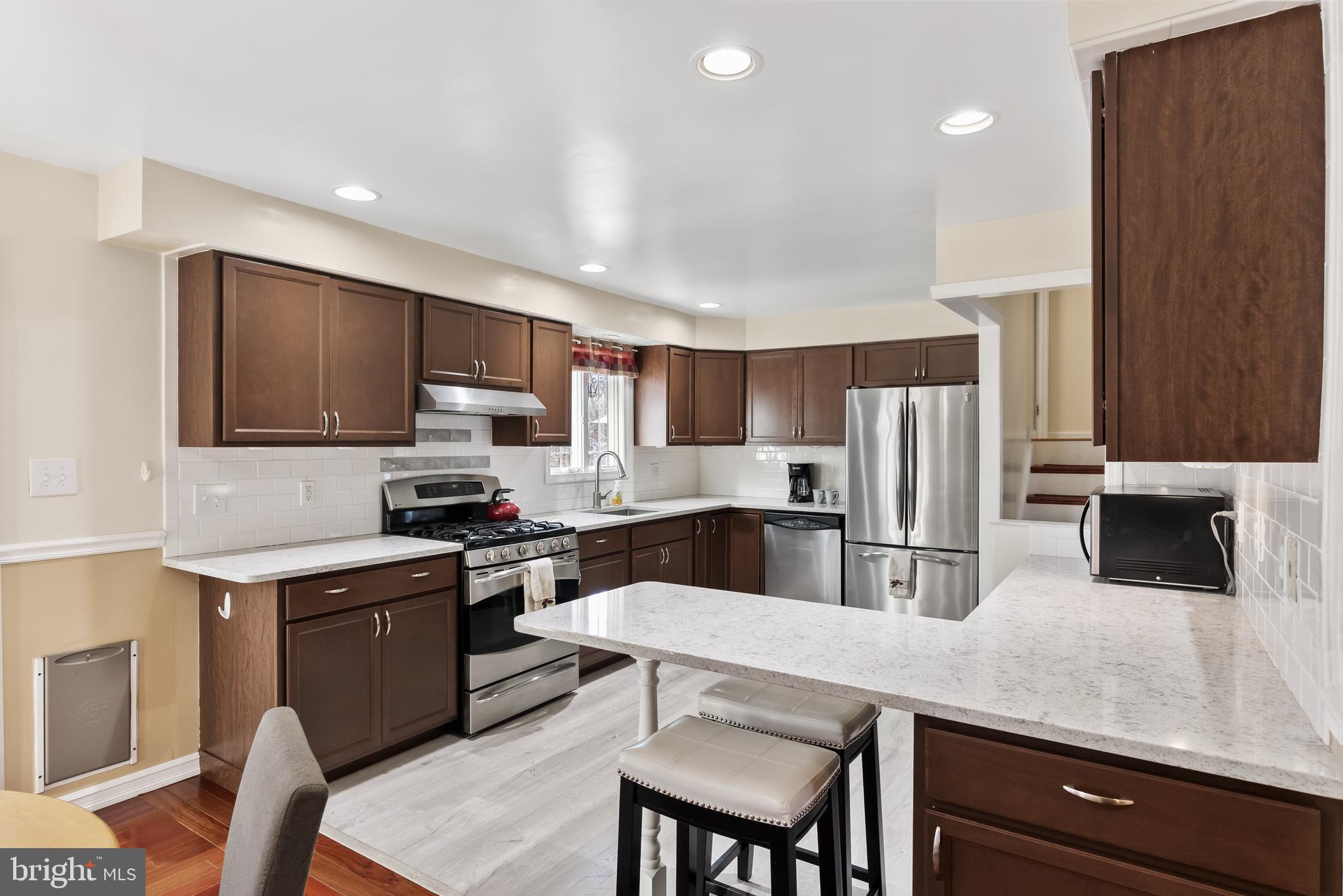 **Multiple Offers received! Highest and Best offers due Wednesday, January 8th @ 12pm** Nestled on a charming tree-lined street in the heart of Old Tenby Chase, this expanded "Dorset" model is a rare find, offering an oversized family room expansion and finished basement; you'll appreciate the spaciousness this turn-key home offers from the moment you enter. Upon entry, gorgeous Brazilian cherry hardwoods greet you, extending into the living room with recessed lighting and a cozy gas fireplace. Adjacent is the remodeled kitchen that opens to the dining room, boasting updated wood cabinetry, under cabinet lighting, sparkling quartz countertops, white subway backsplash, stainless steel appliances, and eating area with french door access to the 17x21 Trex deck for easy entertaining! Downstairs features an updated half bath and a bright, inviting family room that streams in lots of natural sunlight and offers newer low-maintenance luxury vinyl flooring, wood-burning fireplace, recessed lighting, custom-built in cabinetry, and sliding door access to the beautiful paver patio. Access the finished basement for even more living space that offers fresh neutral paint, tile carpet (rubber-backed commercial grade), built-in cabinetry, storage closets, and large laundry room. And in case you need even more storage, look no further than the floored attic with double insulation to make the home more energy efficient, 1-car garage complete with work bench, and shed with electric. Upstairs, you'll find 3 bedrooms with updated flooring, ceiling fans, and closets equipped with organizers, and an updated full bath. Step outside to the fenced backyard that is your private retreat and enjoy the paver patio and deck with vinyl railing, perfect for hosting summer barbecues or simply unwinding after a long day. The lush, tree-lined surroundings add to the serene ambiance of this home and charm of "Old Tenby." Additional highlights of this meticulously maintained home include Andersen casement windows throughout, solid wood 6 panel doors, newer front and storm door, newer attic pull-down, and expanded driveway. Conveniently located near Rt. 130 and major highways, this home provides easy access to shopping, dining, and entertainment. With its close proximity to Philadelphia, you'll experience the best of suburban living with city amenities just a short drive away. And if you have little ones, Tenby Chase swim club and soccer fields are only minutes away. This home truly is the epitome of pride of ownership with every detail reflecting meticulous care and thoughtful updates. Don't miss your opportunity to own this one-of-a-kind home--schedule your private showing today!