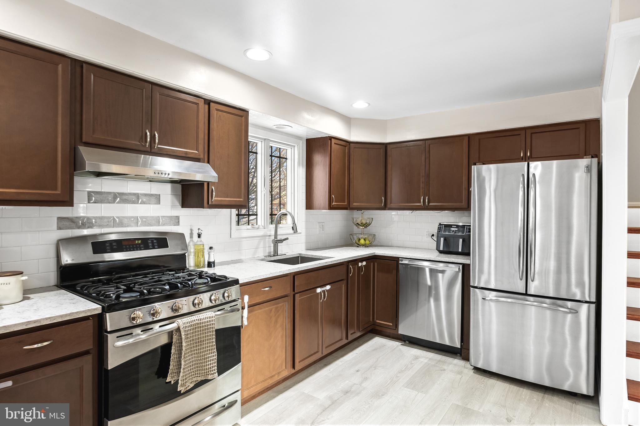 **Sunday, Feb 15th Open House CANCELED** Nestled on a charming tree-lined street in the heart of Olde Tenby Chase, this expanded "Dorset" model is a rare find, offering an oversized family room expansion and finished basement; you'll appreciate the spaciousness this turn-key home offers from the moment you enter. Upon entry, gorgeous Brazilian cherry hardwoods greet you, extending into the living room with recessed lighting and a cozy gas fireplace. Adjacent is the remodeled kitchen that opens to the dining room, boasting updated wood cabinetry, under cabinet lighting, sparkling quartz countertops, white subway backsplash, stainless steel appliances, and eating area with french door access to the 17x21 Trex deck for easy entertaining! Downstairs features an updated half bath and a bright, inviting family room that streams in lots of natural sunlight and offers newer low-maintenance luxury vinyl flooring, wood-burning fireplace, recessed lighting, custom-built in cabinetry, and sliding door access to the beautiful paver patio. Access the finished basement for even more living space that offers fresh neutral paint, tile carpet (rubber-backed commercial grade), built-in cabinetry, storage closets, and large laundry room. And in case you need even more storage, look no further than the floored attic with double insulation to make the home more energy efficient, 1-car garage complete with work bench, and shed with electric. Upstairs, you'll find 3 bedrooms with updated flooring, ceiling fans, and closets equipped with organizers, and an updated full bath. Step outside to the fenced backyard that is your private retreat and enjoy the paver patio and deck with vinyl railing, perfect for hosting summer barbecues or simply unwinding after a long day. The lush, tree-lined surroundings add to the serene ambiance of this home and charm of "Old Tenby." Additional highlights of this meticulously maintained home include Andersen casement windows throughout, solid wood 6 panel doors, newer front and storm door, newer attic pulldown, and expanded driveway. Conveniently located near Rt. 130 and major highways, this home provides easy access to shopping, dining, and entertainment. With its close proximity to Philadelphia, you'll experience the best of suburban living with city amenities just a short drive away. And if you have little ones, Tenby Chase swim club and soccer fields are only minutes away. This home truly is the epitome of pride of ownership with every detail reflecting meticulous care and thoughtful updates. Don't miss your opportunity to own this one-of-a-kind home--schedule your private showing today!