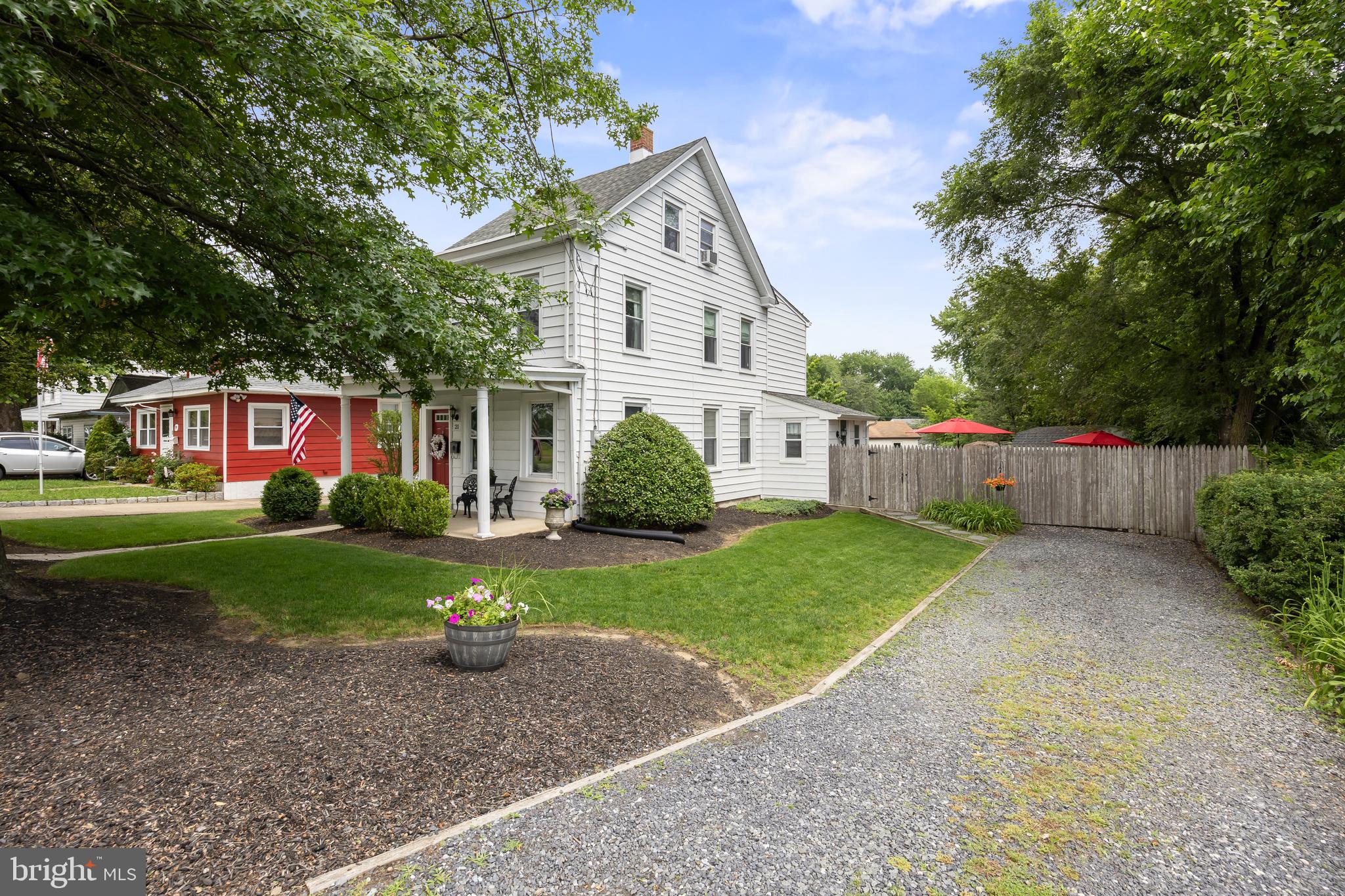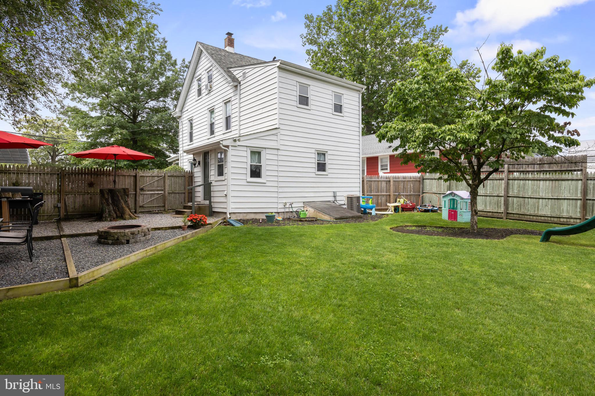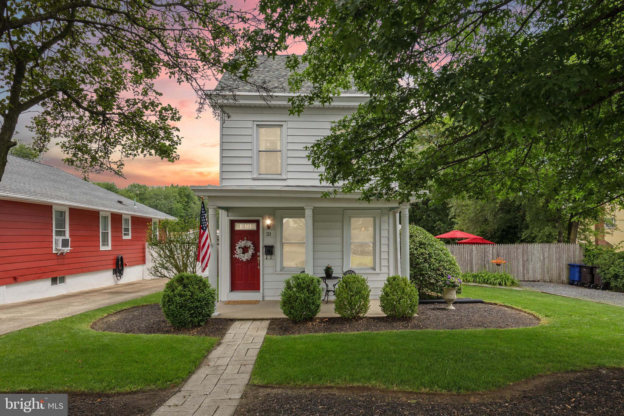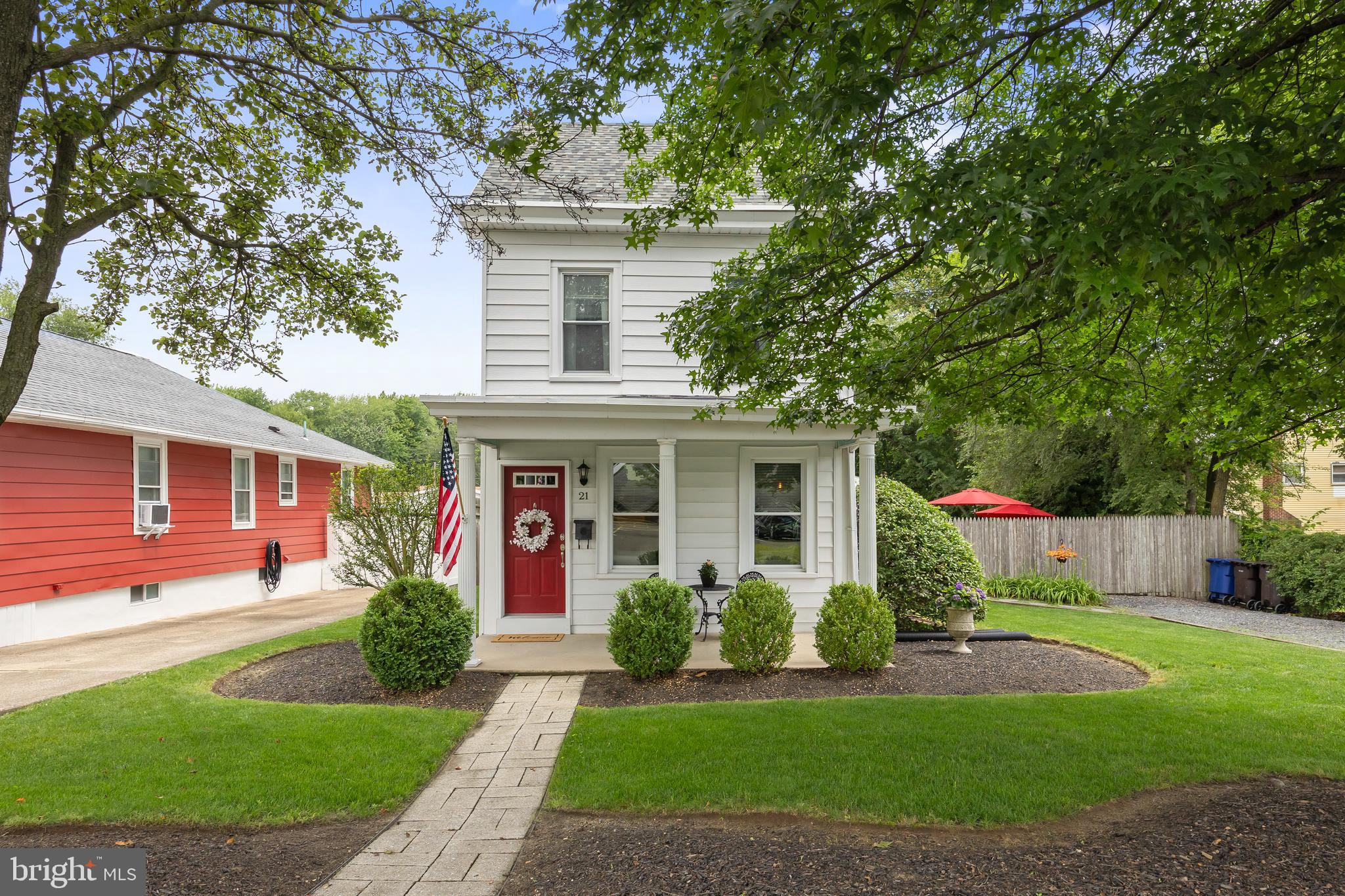 Welcome to this beautifully updated 3-bedroom, 1.5-bath Colonial bursting with character and modern touches throughout. From the moment you arrive, you'll be drawn in by the inviting covered front porch with classic columns, which is a perfect spot to enjoy your morning coffee. Step inside to discover the warmth of original wide-plank hardwood flooring that flows seamlessly from the living room to the formal dining room. The living area features a stylish wood-accented wall, while the dining room boasts exposed brick, adding timeless charm and personality to the home. The remodeled kitchen is a true highlight, showcasing white cabinetry, granite countertops, a subway tile backsplash, stainless steel appliances, and maintenance-free luxury vinyl flooring. An updated half bath and 2 storage closets completes the main level. Upstairs, you'll find two well-sized bedrooms, a convenient laundry area, and a beautifully updated full bathroom with a tiled tub/shower, glass doors, and modern fixtures. The third-floor bedroom offers a spacious retreat that is ideal for a primary suite, guest space, or home office. Need storage? The full unfinished basement has plenty of potential. Outside, enjoy the generously-sized, fully fenced backyard complete with a patio, firepit, shed, and a thriving garden, perfect for relaxing or entertaining. All of this in a prime Delran location, conveniently located near Rt. 130, I-295, shopping, and schools. This home truly blends historic charm with modern convenience. Schedule your tour today!
