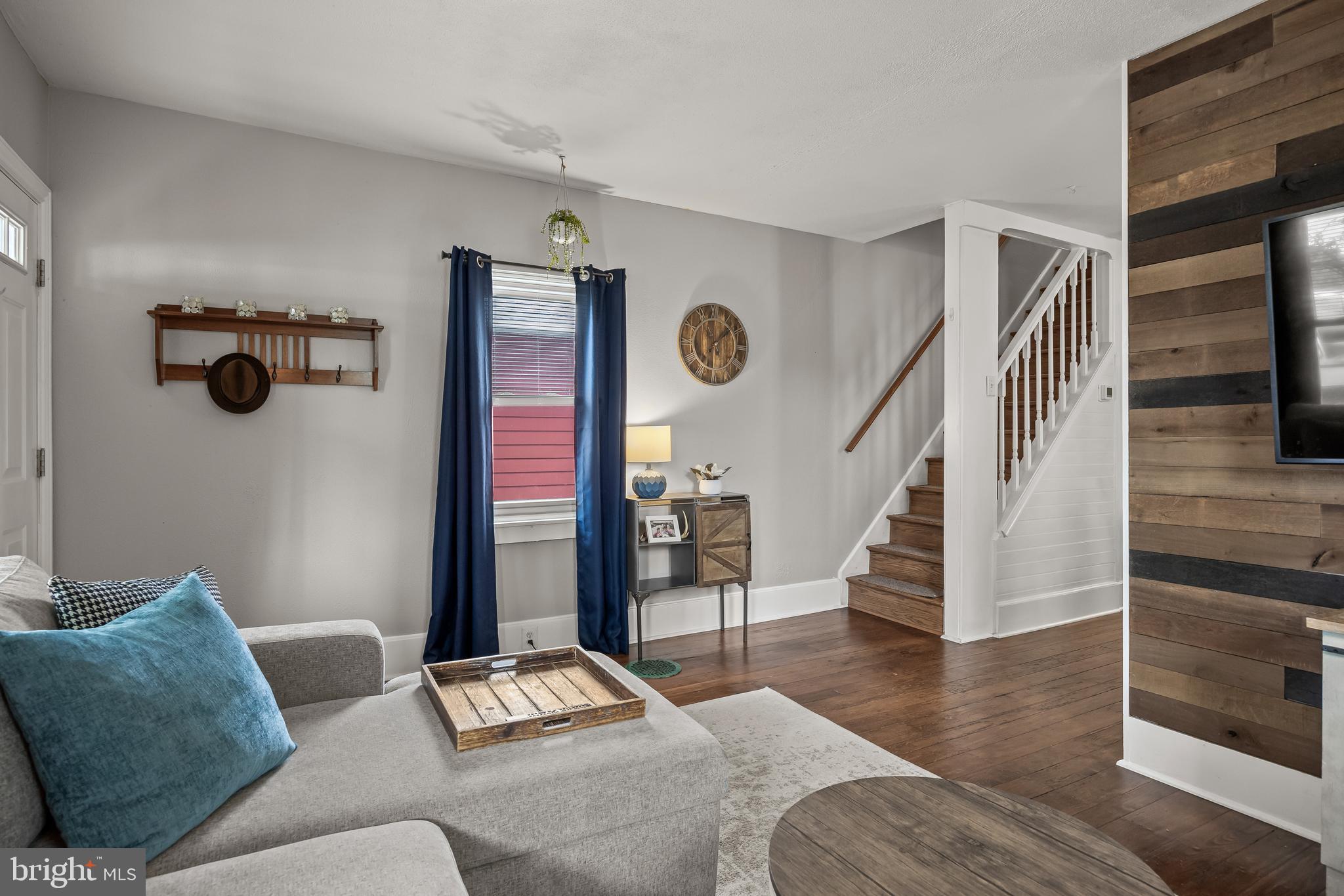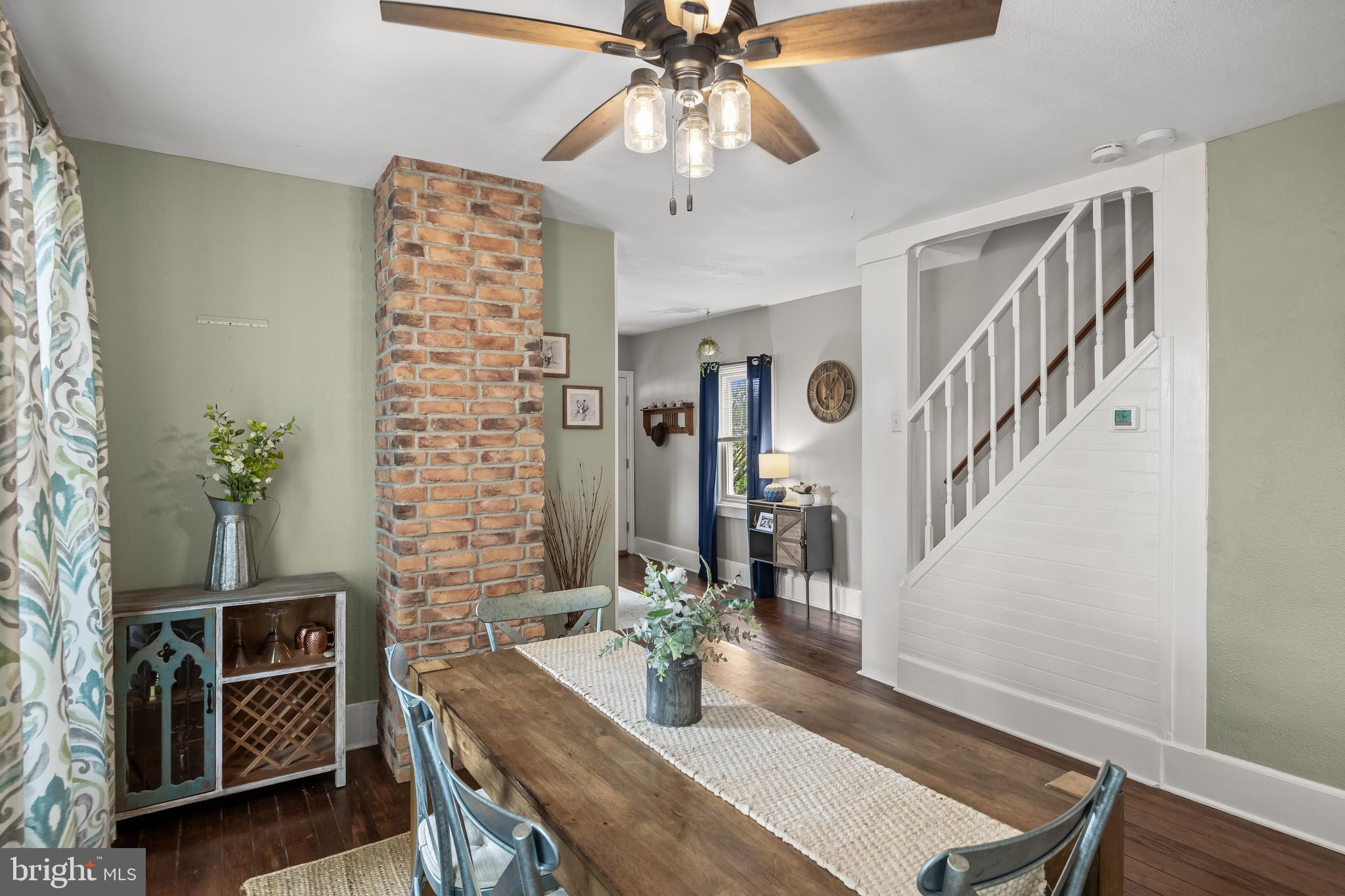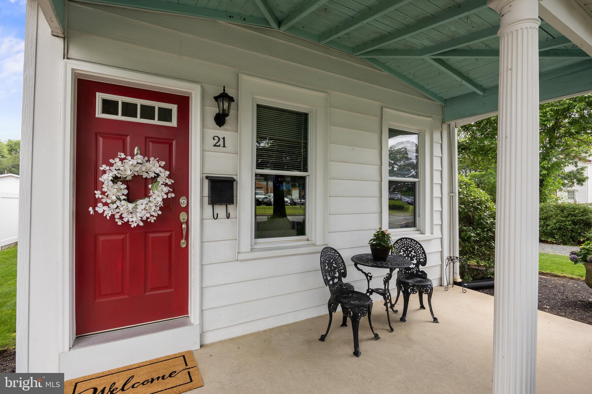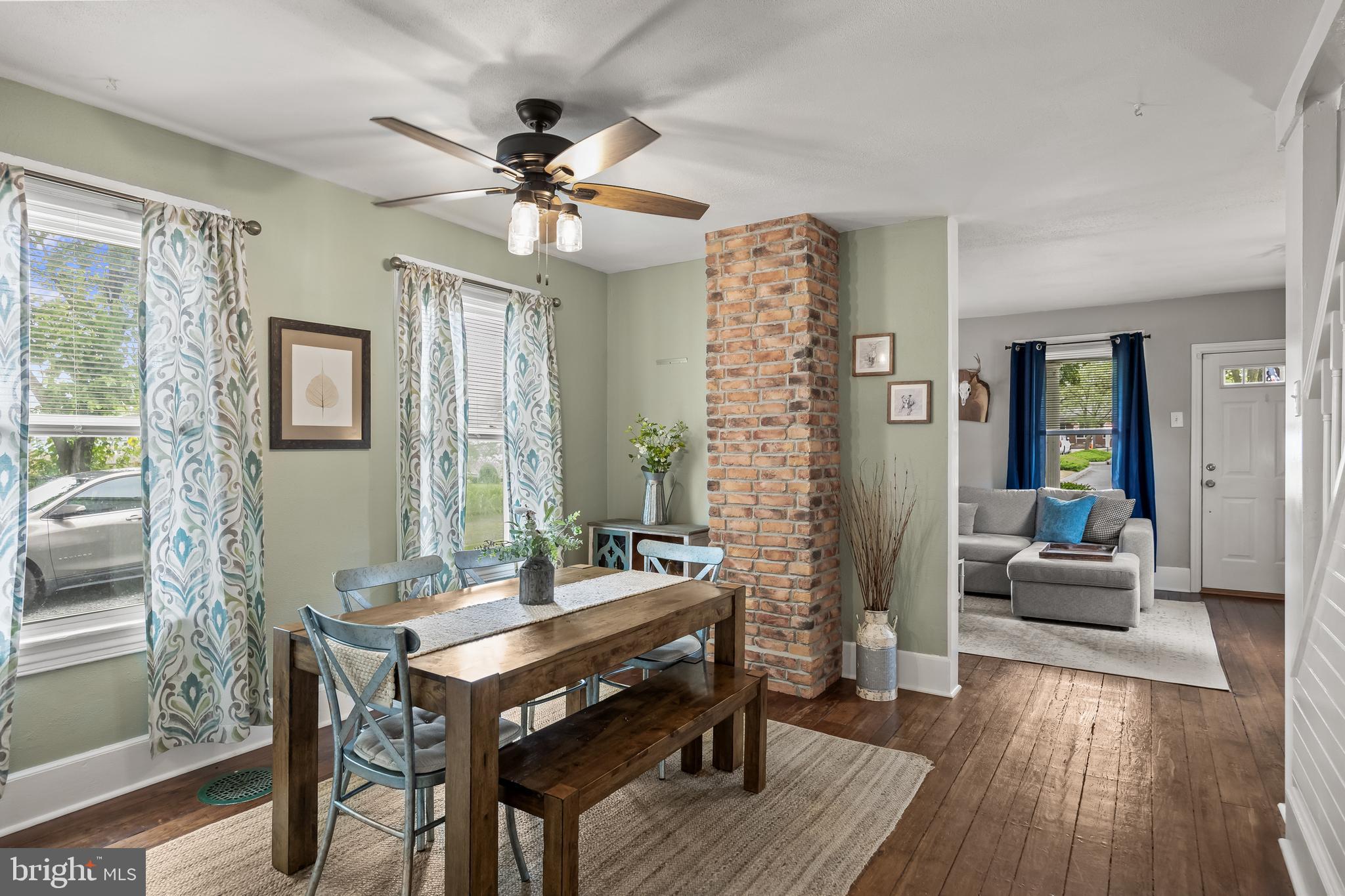 Welcome to this beautifully updated 3-bedroom, 1.5-bath Colonial bursting with character and modern touches throughout. From the moment you arrive, you'll be drawn in by the inviting covered front porch with classic columns, which is a perfect spot to enjoy your morning coffee. Step inside to discover the warmth of original wide-plank hardwood flooring that flows seamlessly from the living room to the formal dining room. The living area features a stylish wood-accented wall, while the dining room boasts exposed brick, adding timeless charm and personality to the home. The remodeled kitchen is a true highlight, showcasing white cabinetry, granite countertops, a subway tile backsplash, stainless steel appliances, and maintenance-free luxury vinyl flooring. An updated half bath and 2 storage closets completes the main level. Upstairs, you'll find two well-sized bedrooms, a convenient laundry area, and a beautifully updated full bathroom with a tiled tub/shower, glass doors, and modern fixtures. The third-floor bedroom offers a spacious retreat that is ideal for a primary suite, guest space, or home office. Need storage? The full unfinished basement has plenty of potential. Outside, enjoy the generously-sized, fully fenced backyard complete with a patio, firepit, shed, and a thriving garden, perfect for relaxing or entertaining. All of this in a prime Delran location, conveniently located near Rt. 130, I-295, shopping, and schools. This home truly blends historic charm with modern convenience. Schedule your tour today!