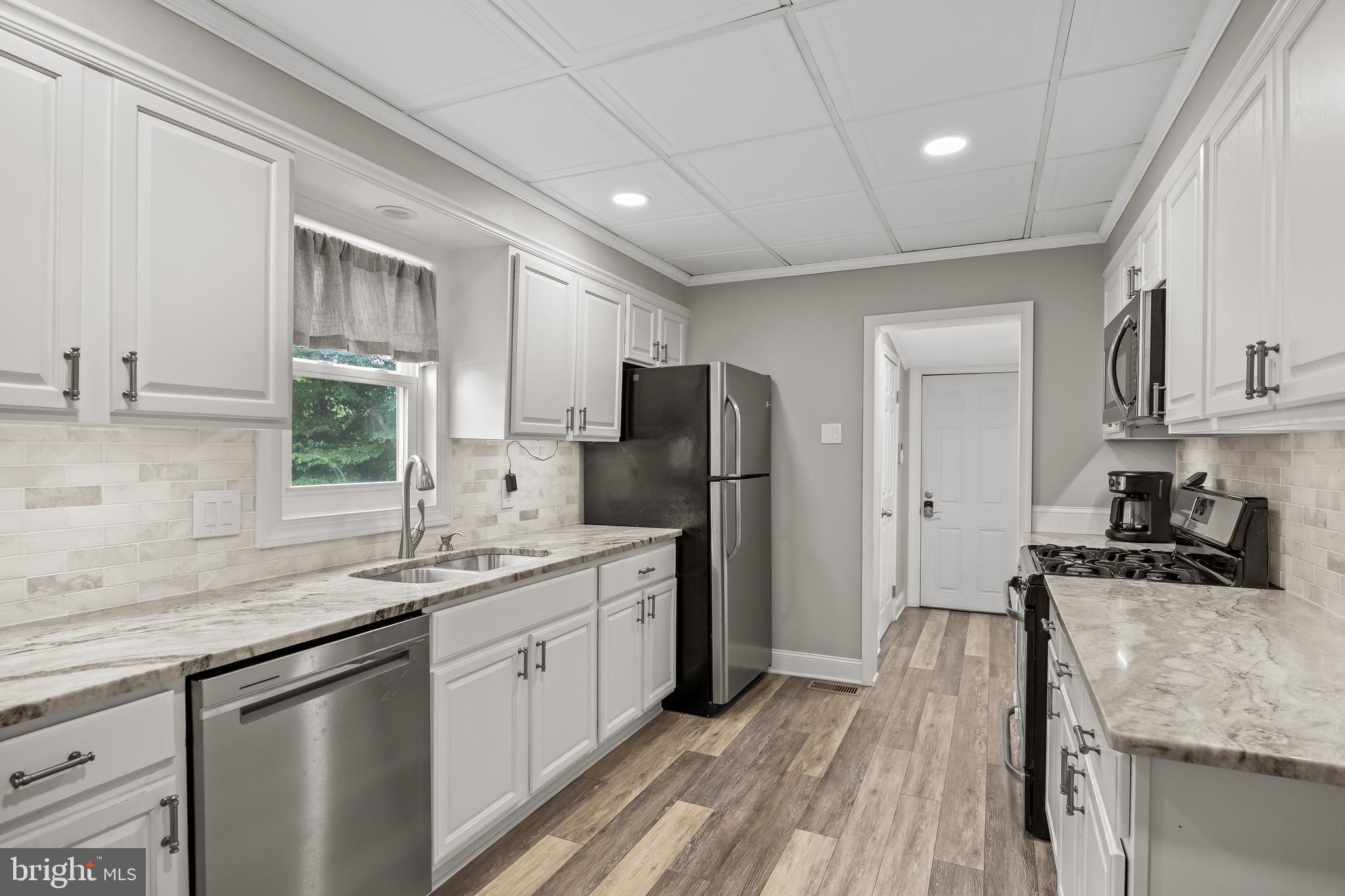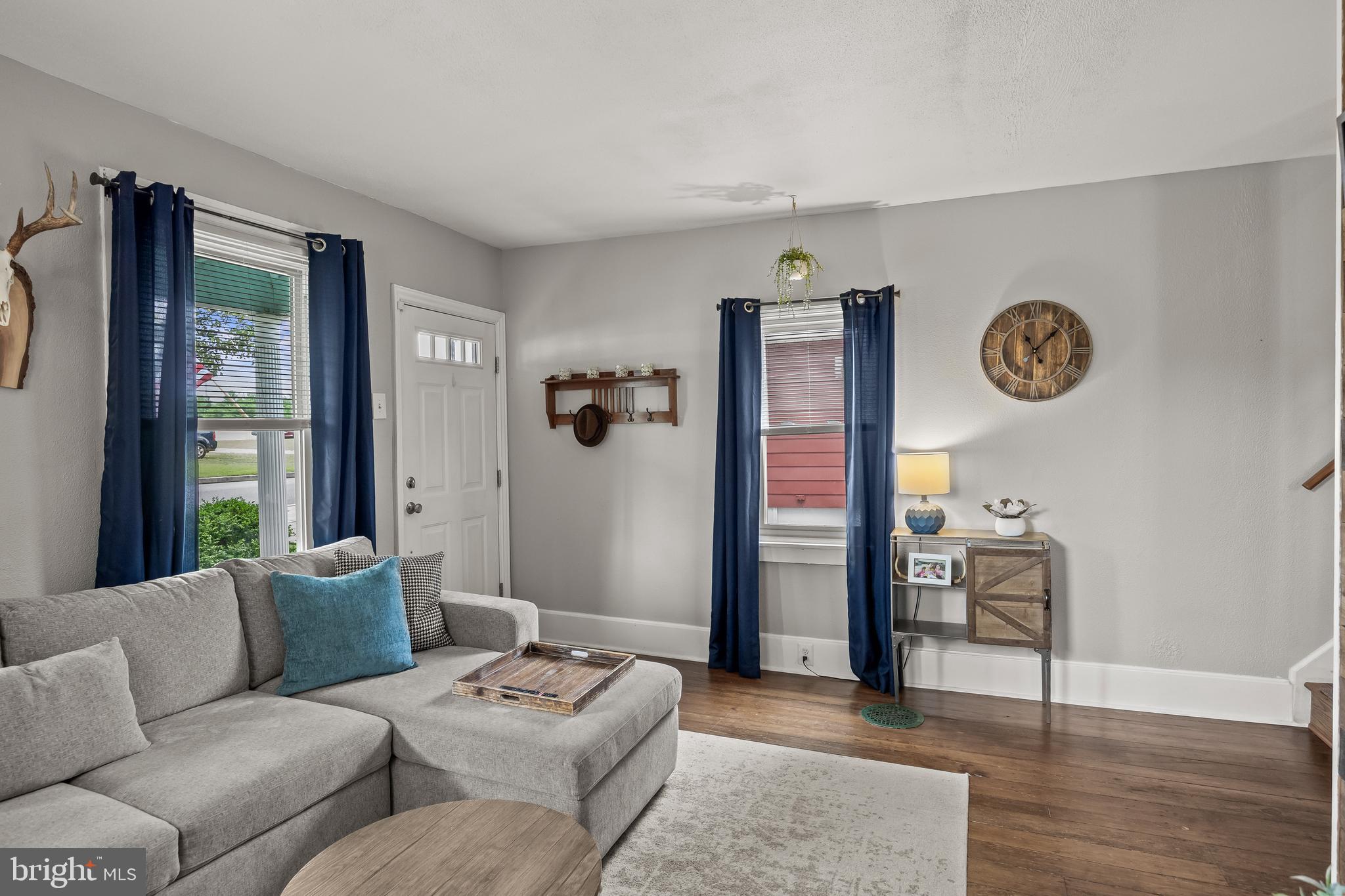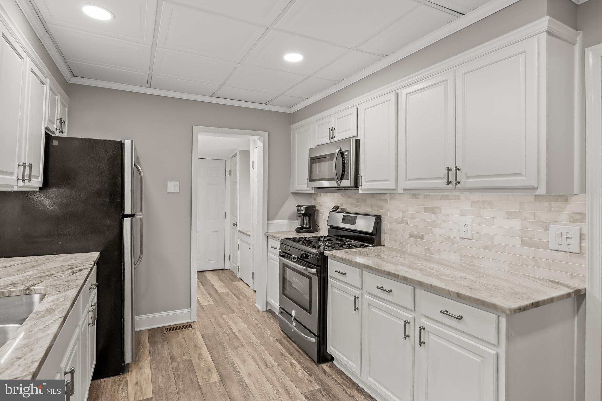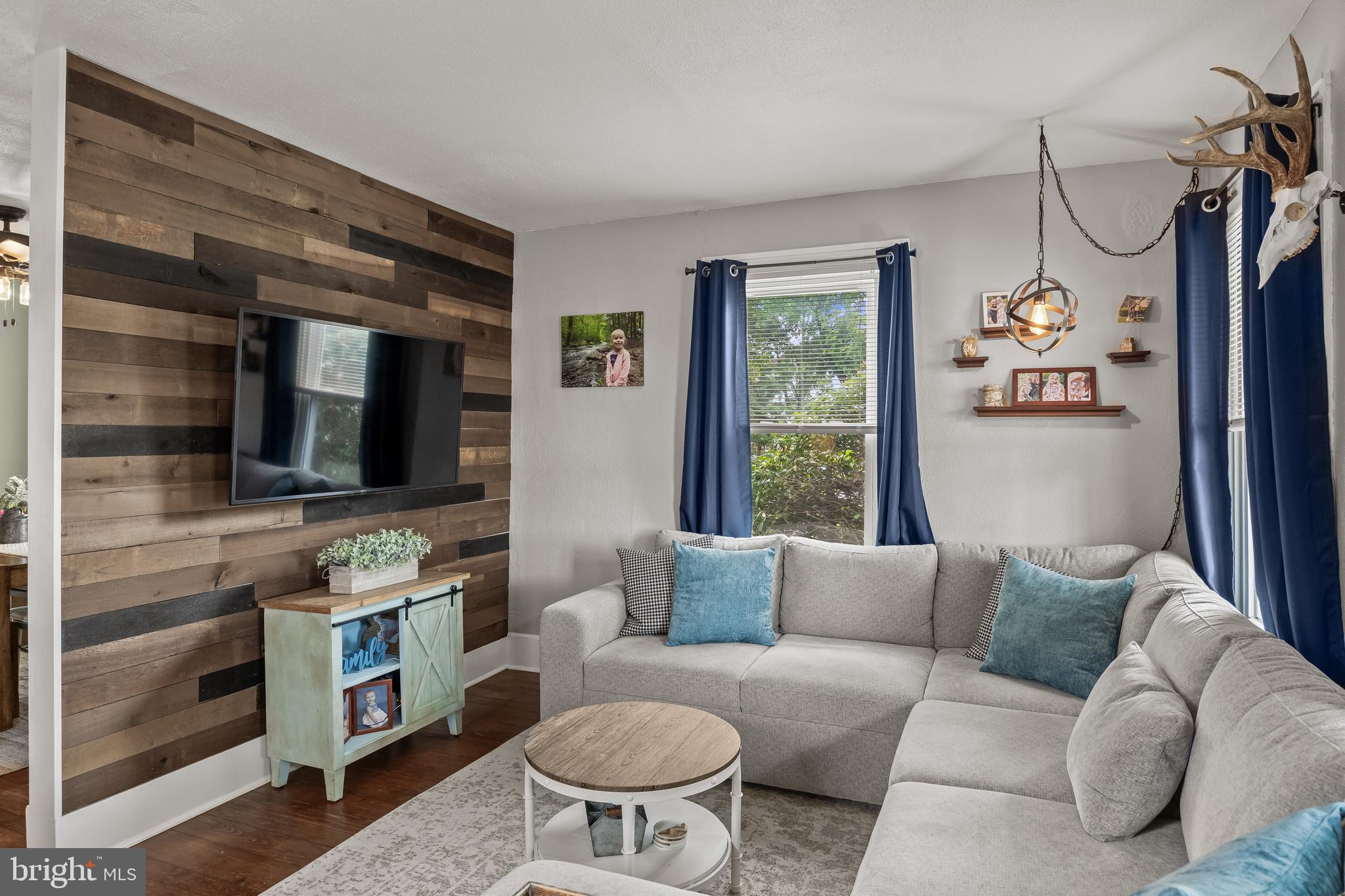 Welcome to this beautifully updated 3-bedroom, 1.5-bath Colonial bursting with character and modern touches throughout. From the moment you arrive, you'll be drawn in by the inviting covered front porch with classic columns, which is a perfect spot to enjoy your morning coffee. Step inside to discover the warmth of original wide-plank hardwood flooring that flows seamlessly from the living room to the formal dining room. The living area features a stylish wood-accented wall, while the dining room boasts exposed brick, adding timeless charm and personality to the home. The remodeled kitchen is a true highlight, showcasing white cabinetry, granite countertops, a subway tile backsplash, stainless steel appliances, and maintenance-free luxury vinyl flooring. An updated half bath and 2 storage closets completes the main level. Upstairs, you'll find two well-sized bedrooms, a convenient laundry area, and a beautifully updated full bathroom with a tiled tub/shower, glass doors, and modern fixtures. The third-floor bedroom offers a spacious retreat that is ideal for a primary suite, guest space, or home office. Need storage? The full unfinished basement has plenty of potential. Outside, enjoy the generously-sized, fully fenced backyard complete with a patio, firepit, shed, and a thriving garden, perfect for relaxing or entertaining. All of this in a prime Delran location, conveniently located near Rt. 130, I-295, shopping, and schools. This home truly blends historic charm with modern convenience. Schedule your tour today!