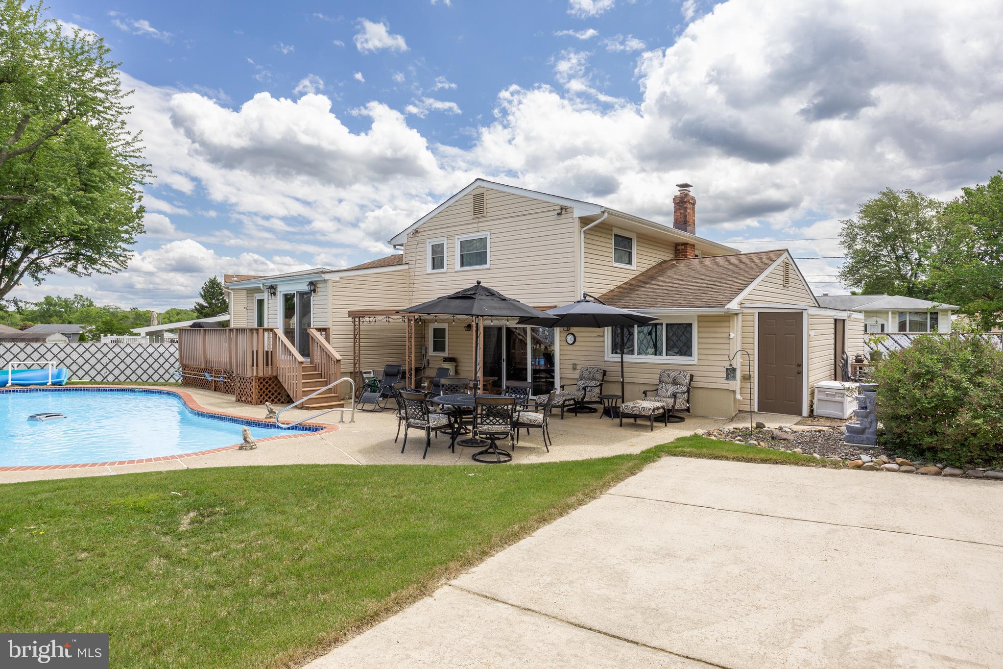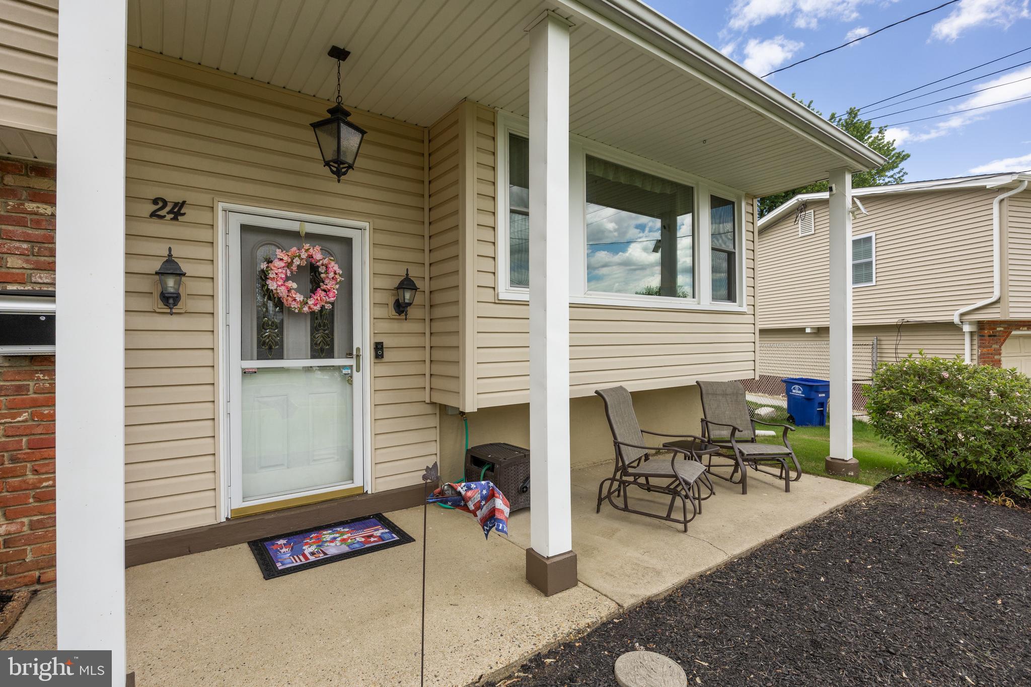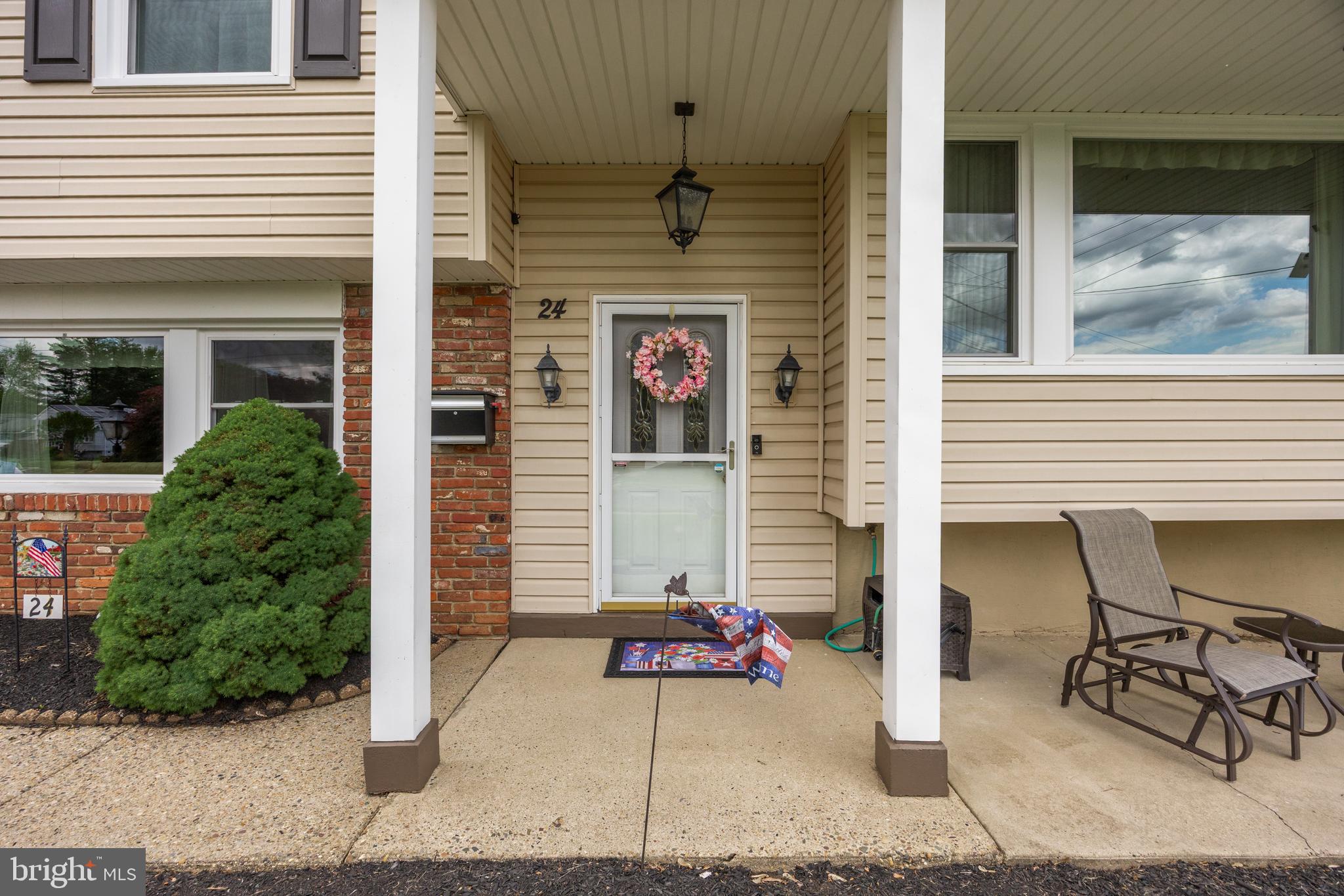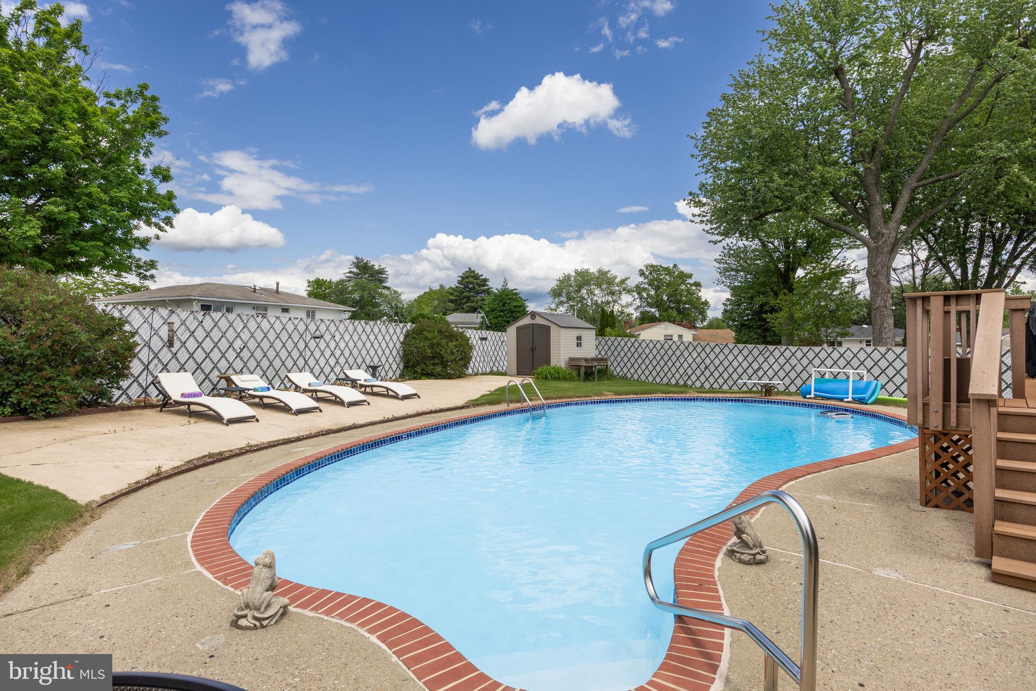 Absolutely pristine! Fall in love with this beautiful 4 bedroom expanded Split Level, offering multiple levels of living space and a stunning in-ground pool--perfect for Summer enjoyment. Meticulously maintained, this home is move-in ready and waiting for its next owner! As you approach the home, take note of the professionally landscaped yard and the welcoming maple tree that enhance the curb appeal of 24 Holyoke Drive. Step inside the foyer and are be greeted by a spacious family room featuring luxury waterproof vinyl flooring -- perfect for those pool days, a striking brick accent wall, an electric fireplace that provides cozy ambiance with or without heat, and wood ceiling beams that add warmth and character. Sliding glass doors open to a covered patio for effortless indoor-outdoor living that leads to your heated, concrete in-ground pool, a private oasis for unforgettable summer gatherings. Also on this level is a versatile bonus room with a large 8x6 storage closet, ideal for a home office, playroom, guest bedroom, or whatever suits your needs. Last but not least, an updated half bath completes this level. Upstairs, the formal living room boasts a large picture window and gleaming hardwood floors, which continue into the expanded dining room with sliders to a maintenance-free Trex deck that is ideal for entertaining or relaxing outdoors. The updated kitchen features modern neutral tile flooring, wood cabinetry, sparkling countertops, stainless steel appliances, and a cozy breakfast area with exposed beams and direct access to the deck. The upper level offers three generously sized bedrooms and a fully renovated hall bathroom featuring granite counters, modern flooring, and a tub/shower combo with sleek glass doors. The stairway also features a unique storage closet that is extra deep and perfect for games, toys, etc. Need more space? The finished basement provides additional living or recreational space with Sauna (included in sale!), along with a dedicated laundry area and separate workshop that is perfect for hobbies or storage. Out back, enjoy your very own heated concrete in-ground pool, surrounded by lush landscaping, creating a resort-style feel right at home. Additional features include a deep storage shed attached to the house and a separate free-standing shed for even more storage. Please note newer windows installed in 2020 and transferrable 15 year warranty to buyer. This home is located in a prime location that is just minutes from Rt 130, I-295, schools, shopping, and only 20 minutes from Philadelphia. Don't miss the opportunity to make this exceptional home your own--just in time for Summer!
