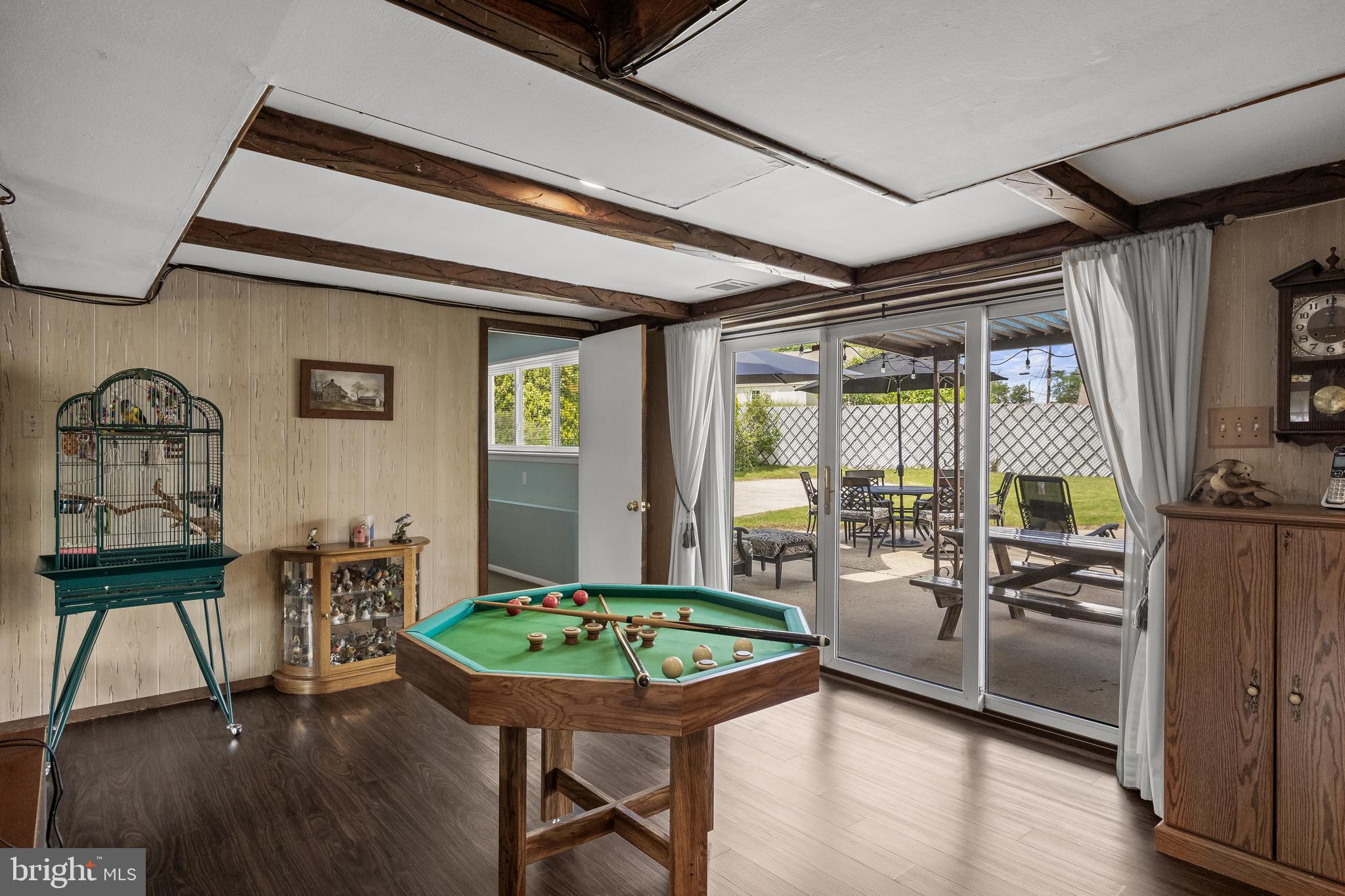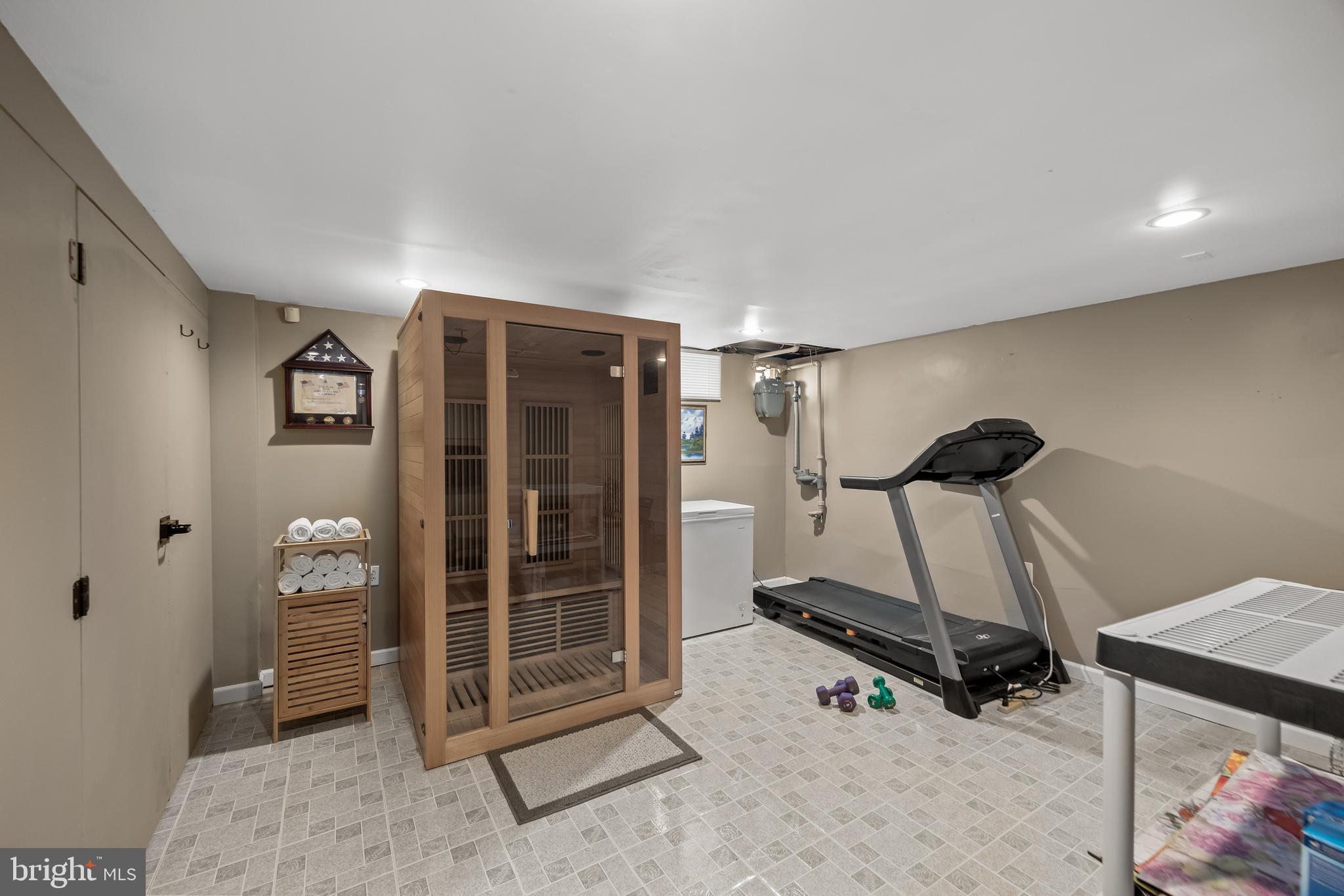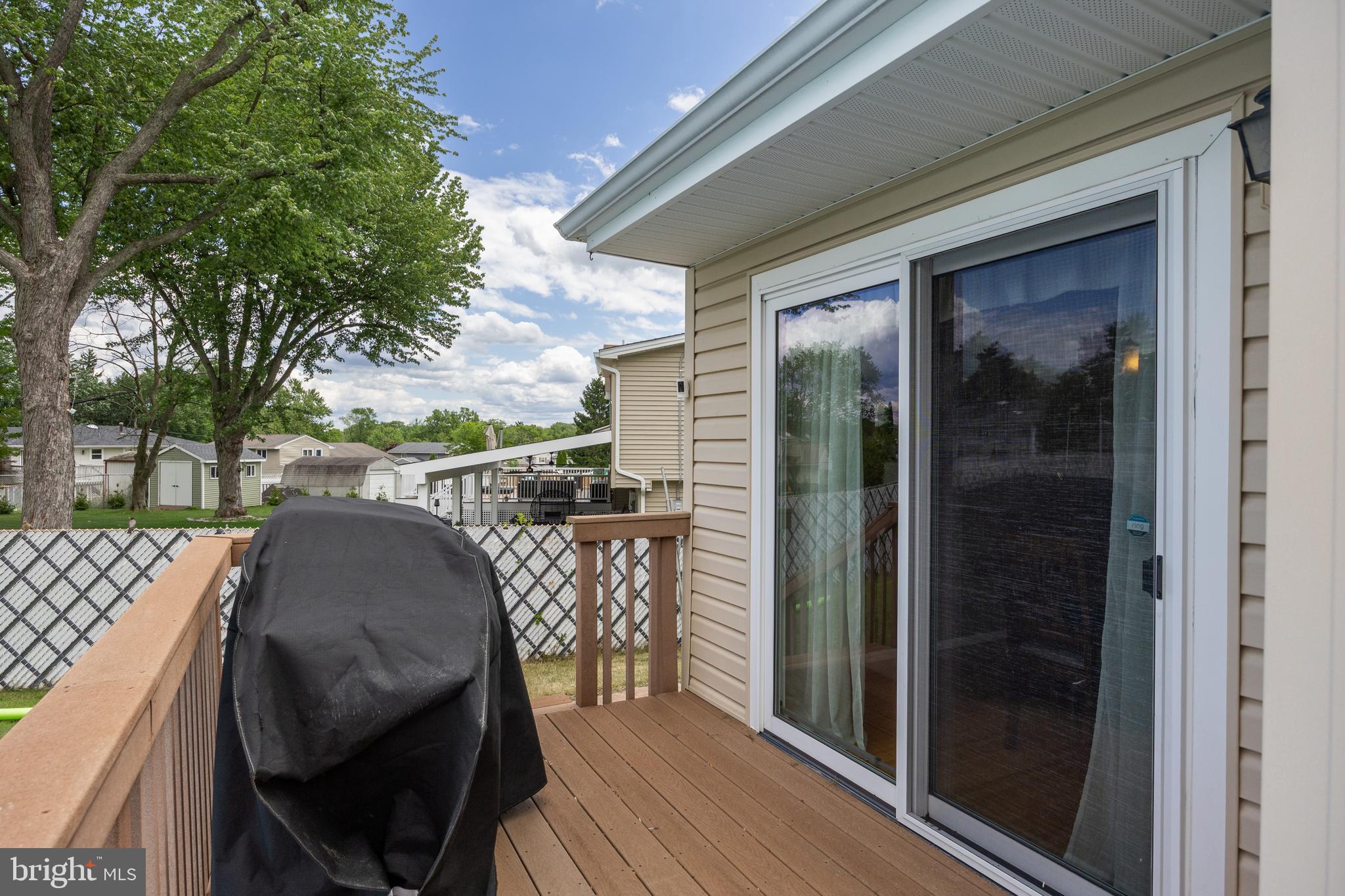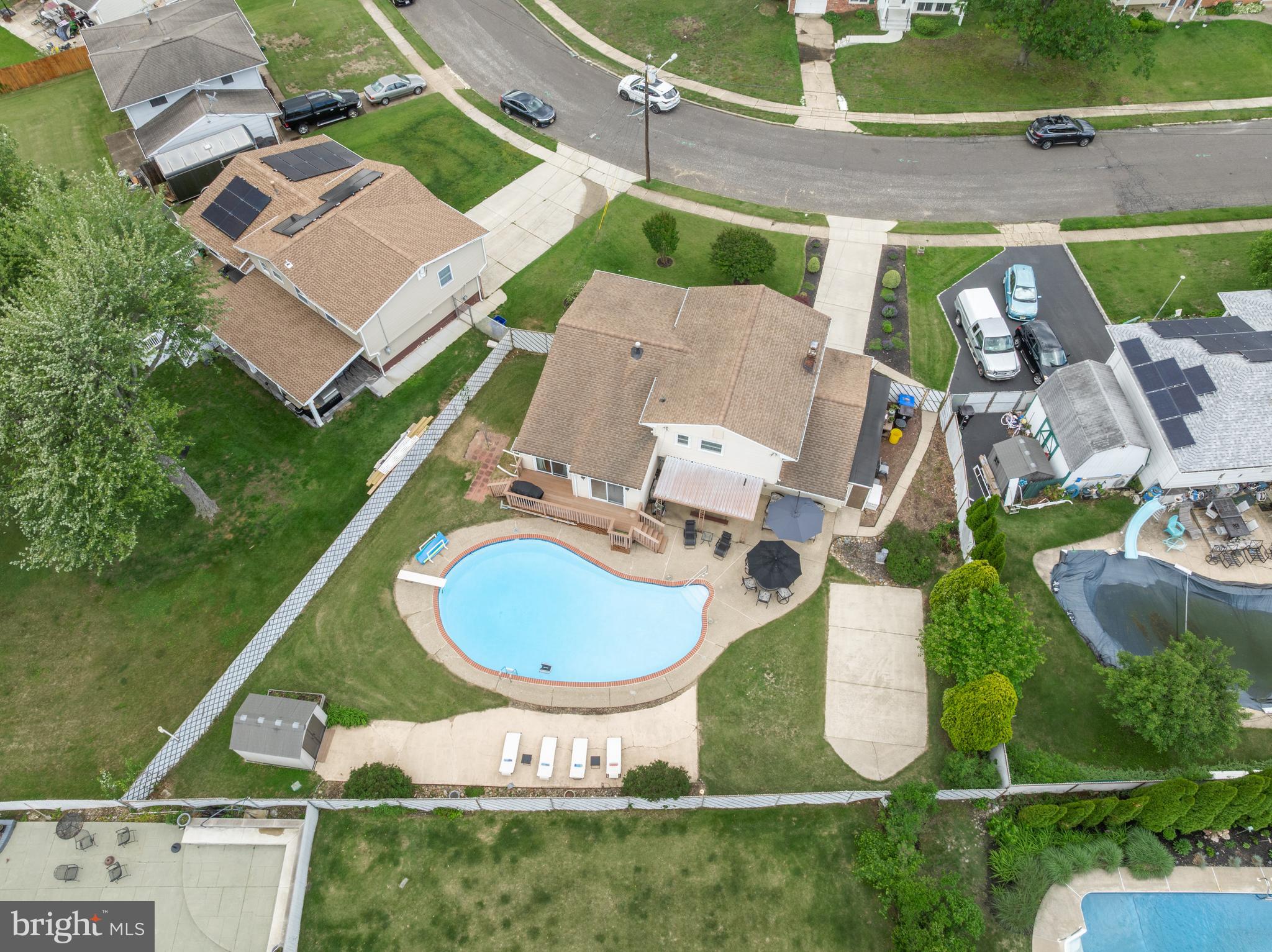 Absolutely pristine! Fall in love with this beautiful 4 bedroom expanded Split Level, offering multiple levels of living space and a stunning in-ground pool--perfect for Summer enjoyment. Meticulously maintained, this home is move-in ready and waiting for its next owner! As you approach the home, take note of the professionally landscaped yard and the welcoming maple tree that enhance the curb appeal of 24 Holyoke Drive. Step inside the foyer and are be greeted by a spacious family room featuring luxury waterproof vinyl flooring -- perfect for those pool days, a striking brick accent wall, an electric fireplace that provides cozy ambiance with or without heat, and wood ceiling beams that add warmth and character. Sliding glass doors open to a covered patio for effortless indoor-outdoor living that leads to your heated, concrete in-ground pool, a private oasis for unforgettable summer gatherings. Also on this level is a versatile bonus room with a large 8x6 storage closet, ideal for a home office, playroom, guest bedroom, or whatever suits your needs. Last but not least, an updated half bath completes this level. Upstairs, the formal living room boasts a large picture window and gleaming hardwood floors, which continue into the expanded dining room with sliders to a maintenance-free Trex deck that is ideal for entertaining or relaxing outdoors. The updated kitchen features modern neutral tile flooring, wood cabinetry, sparkling countertops, stainless steel appliances, and a cozy breakfast area with exposed beams and direct access to the deck. The upper level offers three generously sized bedrooms and a fully renovated hall bathroom featuring granite counters, modern flooring, and a tub/shower combo with sleek glass doors. The stairway also features a unique storage closet that is extra deep and perfect for games, toys, etc. Need more space? The finished basement provides additional living or recreational space with Sauna (included in sale!), along with a dedicated laundry area and separate workshop that is perfect for hobbies or storage. Out back, enjoy your very own heated concrete in-ground pool, surrounded by lush landscaping, creating a resort-style feel right at home. Additional features include a deep storage shed attached to the house and a separate free-standing shed for even more storage. Please note newer windows installed in 2020 and transferrable 15 year warranty to buyer. This home is located in a prime location that is just minutes from Rt 130, I-295, schools, shopping, and only 20 minutes from Philadelphia. Don't miss the opportunity to make this exceptional home your own--just in time for Summer!