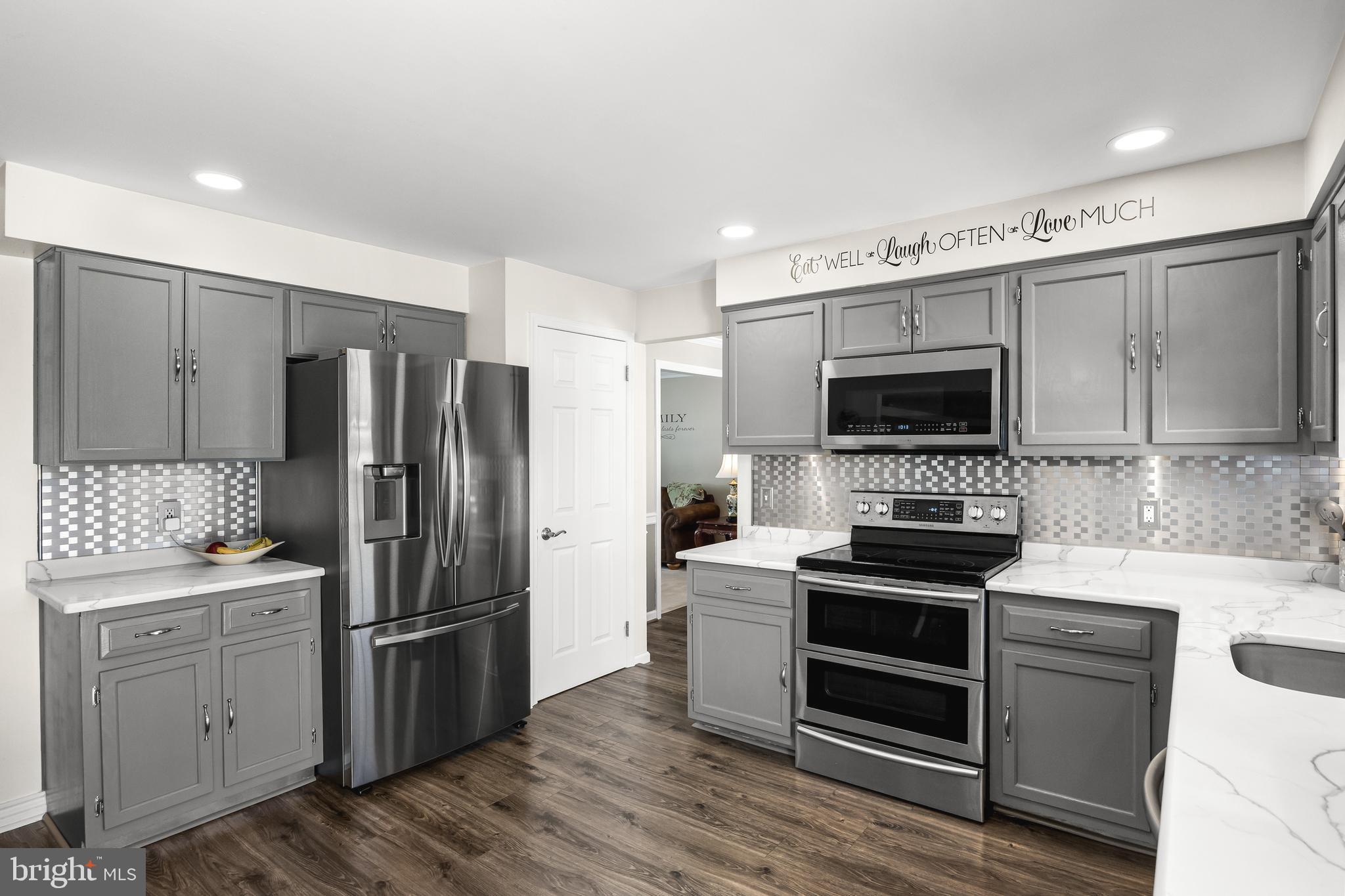 Prepare to be impressed by this beautifully maintained 4 bedroom, 2.5 bath "Clifton" model featuring a true backyard retreat designed for entertaining and everyday enjoyment. Step outside to your private oasis, complete with a stunning Gunite IN-GROUND POOL newly updated in 2017 and expansive patio, enhanced by a custom overhang addition; perfect for shaded lounging, outdoor dining, and hosting unforgettable Summer gatherings. Whether you're relaxing poolside or entertaining guests, this outdoor space is ready to be enjoyed all season long. Ideally located in the highly desirable "Tenby Chase" community, you'll find yourself right in the heart of Delran. As you enter the home, you'll notice that this is one of the few homes that offers an enclosed front porch, ideal for inclement weather and a cozy, welcoming entry that can be enjoyed year-round. The interior of the home reflects pride of ownership. From the moment you enter, neutral paint and waterproof flooring welcomes you and flows through the foyer, dining room, and kitchen, contributing to a well connected layout. The formal living and dining rooms provide great space for everyday living and entertaining, highlighted by crown molding and a large bay window in the dining room that pours in natural light. The kitchen serves as the heart of the home with gray wood cabinetry with under cabinet lighting, modern quartz countertops, and stainless steel appliances, along with a newer sliding glass door that conveniently opens to the entertainer's backyard and covered patio. Just off the kitchen, the step-down family room offers a warm and functional gathering space featuring crown molding, a brick accented wall, gas fireplace, and custom mantle. A convenient laundry and utility room is located directly off the family room along with access to the 1-car garage with workshop area. Upstairs, the primary suite offers a comfortable retreat with an updated full bath with neutral colors and stall shower. Three additional bedrooms share a fully remodeled hall bath that is absolutely gorgeous featuring tile, an updated vanity, and tub shower. Finally, step outside to enjoy your private backyard oasis, centered around a Gunite in-ground pool that was completely redone in 2017 and ranges from three to nine feet in depth. Stonework surrounds the pool, and a covered concrete patio provides the perfect space for outdoor dining and relaxing. Additional features include vinyl replacement windows, a roof approximately 8 years old with gutters and downspouts, a floored attic with pull down stairs, patio roof added in 2023, updated electric service in 2012, and a pool pump and motor replaced in 2025. Conveniently located near Rt. 130 and major highways, this home provides easy access to shopping, dining, and entertainment. With its close proximity to Philadelphia, you'll experience the best of suburban living with city amenities just a short drive away. And if you have little ones, soccer fields are only minutes away. Welcome home!