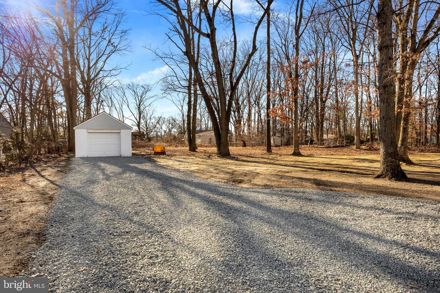 Welcome to this newly renovated 3 bedroom, 1.5 bath brick Ranch style home, located on an expansive lot on over an acre in the heart of Mt. Laurel. For the car enthusiast, woodworker, collector, or small business owner, you'll be delighted to know that this home features not one, but TWO detached garages (1-car and 2-car) with electric, measuring 22'x23' and 22'x13' with separate, fresh stone driveways. You'll have plenty of space to store all your toys and tools! Step inside and be greeted by the warmth and charm of beautiful, refinished hardwood flooring and fresh paint throughout. The ample-sized living room is perfect for relaxing and unwinding, featuring a stone wall fireplace. The formal dining room provides a great space for hosting dinner parties, and the remodeled kitchen is updated with stainless steel appliances and white shaker cabinetry. There are 3 bedrooms, a newly remodeled bath, and an added half bath for guests. The stairs lead to a spacious floored attic that can be finished off for even more living space, or used for all your storage needs (approved plans for finishing are available at the property). The full basement is a blank canvas, ready for you to make it your own, and features a private exit with walkout stairs. Additional highlights include a newly installed Rheem HVAC, new roof and garage roofs, new 200 amp electrical service, and all new windows. Located near Rt. 38, I-295, and close to shopping, this home is in a prime location that offers lots of easy accessibility. Don't miss your chance to own this remarkable property!