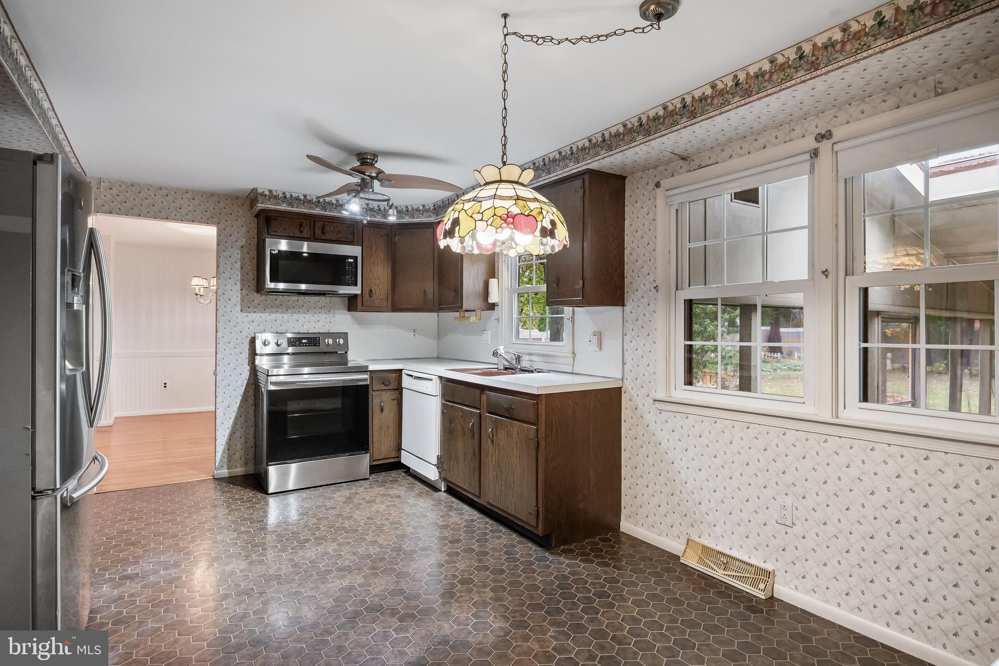 Nestled in the desirable Park Place neighborhood of Cinnaminson, this 3 Bedroom, 1.5 Bath Colonial, lovingly maintained by its original owners, is full of character and ready for its next chapter. As you arrive, you're greeted by a covered front porch that opens to hardwood floors that flows through the foyer, living room, and dining room. The spacious living room features a beautiful bay window, inviting natural light to pour in and create a bright, welcoming space. The kitchen, with its updated appliances, is ready for your personal touch and design vision. It opens to the cozy family room, where you can relax beside the brick fireplace making it the perfect spot to unwind. A slider door leads to the sunroom, complete with skylights and access to the backyard. Completing the main level is a convenient half bath, laundry area, and access to the attached 1-car garage. Upstairs, you'll find three generous bedrooms, all featuring original hardwood flooring, and a full bath. Plus, an oversized walk-in attic provides easy access for all your storage needs. Need more space? The full basement offers more possibilities, whether you envision a recreation room, home gym, or playroom, there's room to make it your own. Conveniently located near Rt 130, major highways, parks, restaurants, and shopping, this home offers both convenience and a sense of community. Plus, you're just a short drive to Philadelphia, making commuting or city visits a breeze. This is an estate sale and is being sold in "as-is" condition, presenting a wonderful opportunity to create your dream home in Cinnaminson.