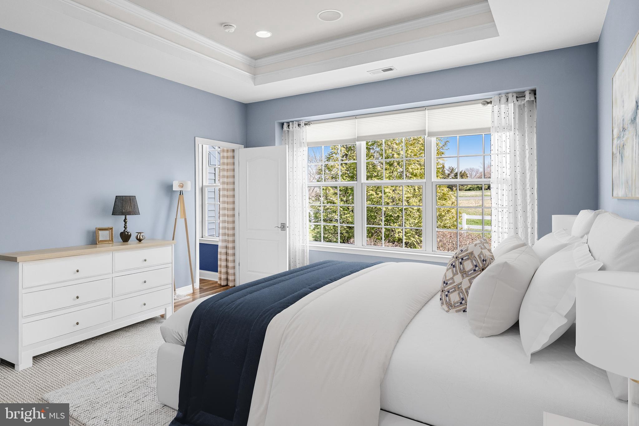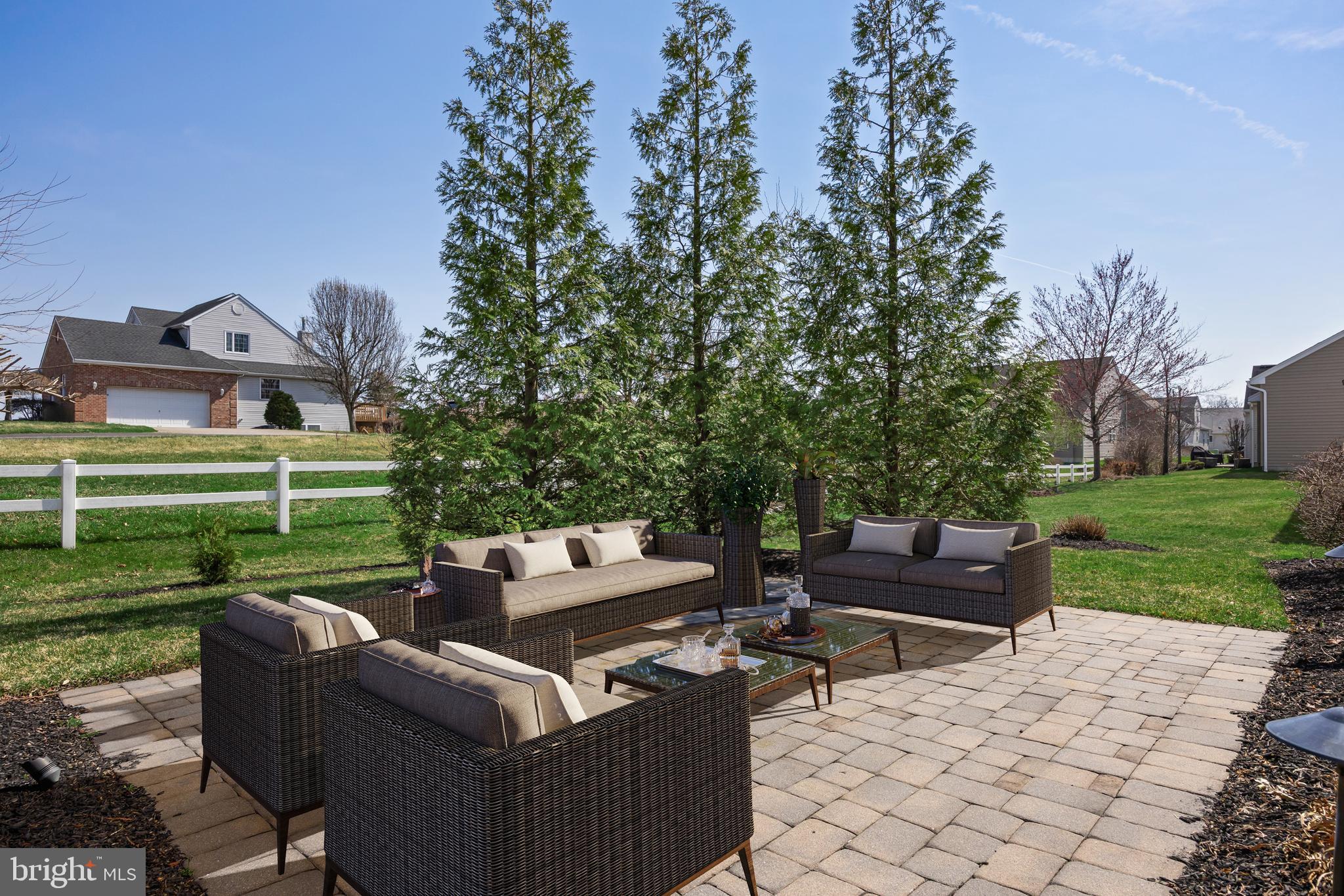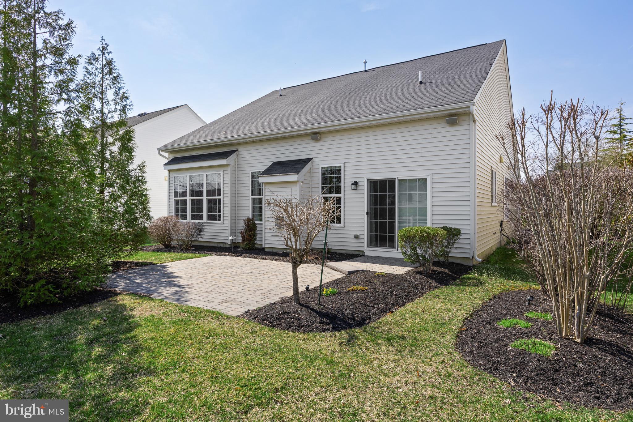Welcome to an immaculate 2 bedroom with loft, 2 bath home with technology bonuses throughout, located in the highly sought-after 55+ community, Wildflowers at Medford. Built in 2014 and a former model home, this Ranch with open layout is a true standout with many thoughtful upgrades throughout! From the moment you arrive, you'll be drawn in by the home's charming curb appeal, highlighted by a beautifully designed hardscaped walkway and professionally maintained landscaping with lighting and a Rainbird irrigation system (complete with rain sensor). Step inside to find newer vinyl plank flooring flowing throughout most of the home, complemented by fresh paint and custom window treatments. The formal dining room sets the tone with elegant chair rail and crown molding, which is perfect for hosting holidays or intimate dinners. The heart of the home features a bright, open-concept kitchen and family room designed for both everyday living and entertaining. The kitchen offers white cabinetry, granite countertops, a stylish tile backsplash, stainless steel appliances, and double wall ovens. A center prep island with pendant lighting offers seating for two, while recessed lighting and a touchless Moen faucet add both convenience and modern appeal. The adjacent breakfast area includes a pantry and sliding doors leading to a paver patio that is ideal for morning coffee or evening relaxation. The family room is warm and inviting, centered around a stunning stone accent wall with a gas fireplace and mantle, designed to accommodate a 60" TV with cable hookup and outdoor speakers. The spacious primary suite is a true retreat, light and bright, featuring a tray ceiling, crown molding, and two walk-in closets. The en-suite bath offers a double vanity and a beautifully appointed walk-in tile shower. A second bedroom and full, updated bathroom with a tiled tub/shower combo provide comfortable accommodations for guests. Upstairs, a versatile bonus area can be used as a home office, hobby space, or additional storage. The laundry room includes a utility sink and offers convenient access to the garage. Additional highlights include a built-in sound system (Primary Suite, Kitchen/Family Room, Patio), Hunter Douglas remote-operated blinds, Ring doorbell, fingerprint smart lock for added security and ease, sprinkler system, and sprinkler system. Enjoy peaceful outdoor living with a private backyard that backs to protected Green Acres, along with access to a nearby walking trail, perfect for enjoying nature right outside your door. This is the lifestyle you've been waiting for. An absolute 10!