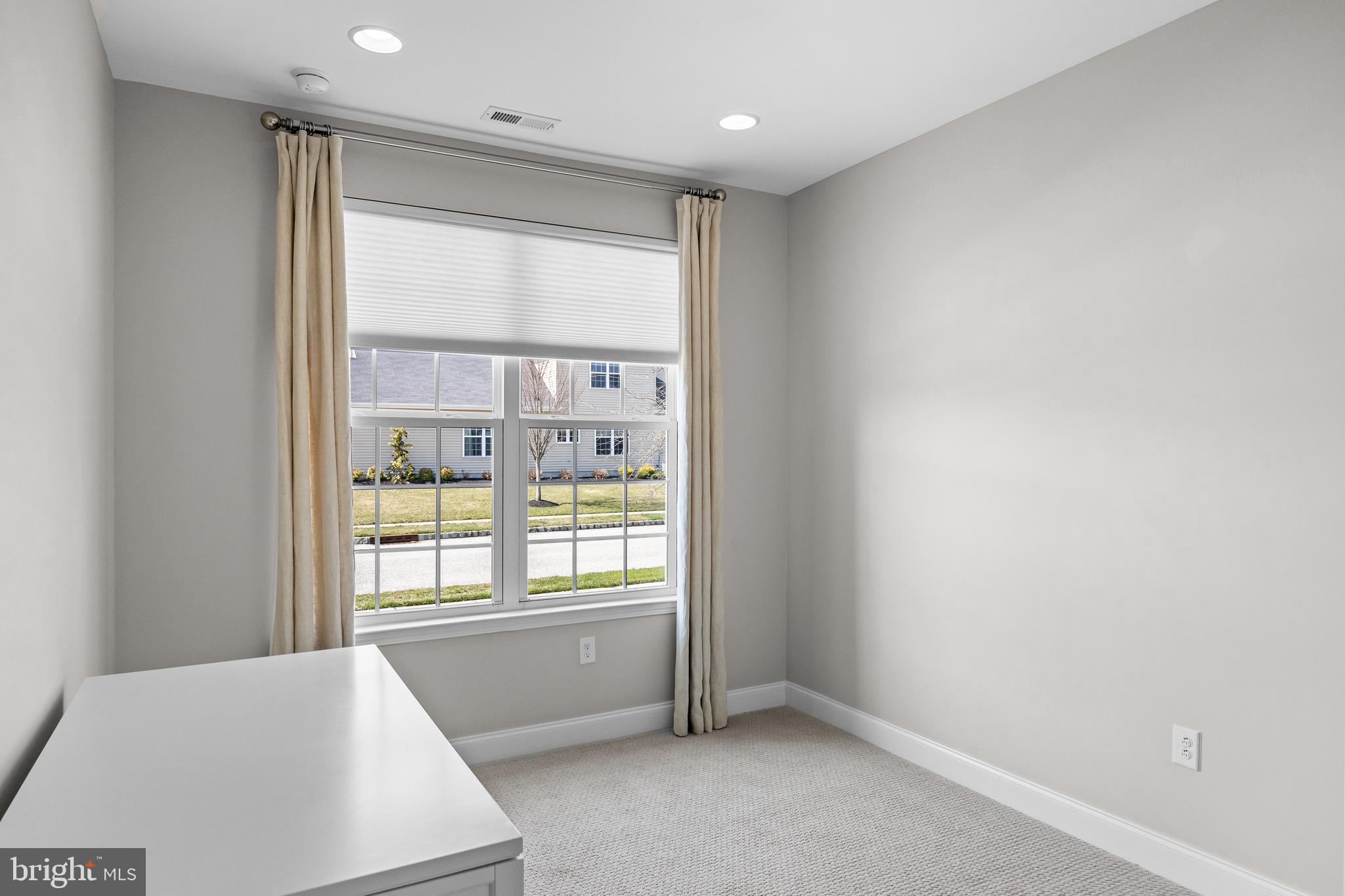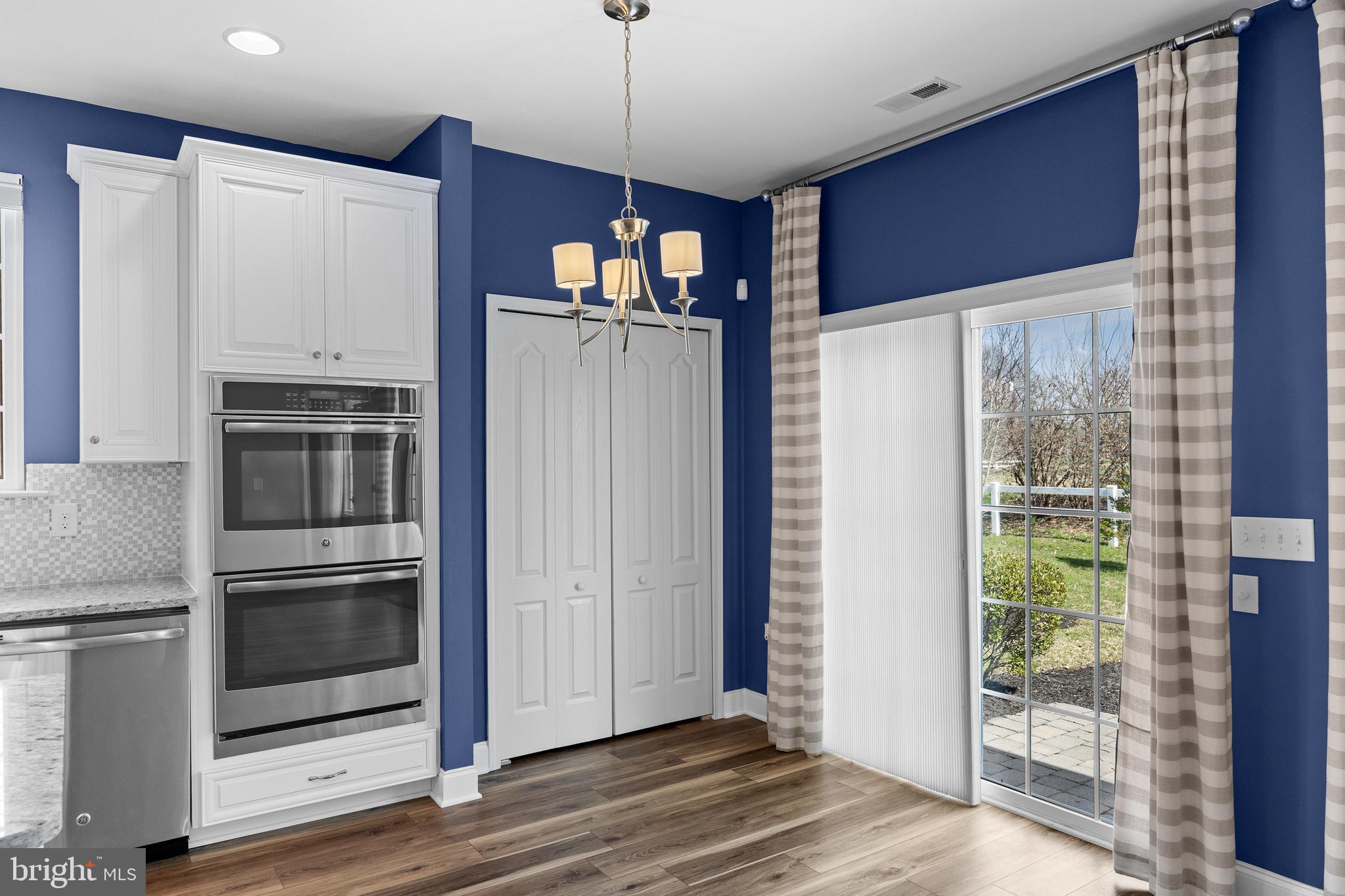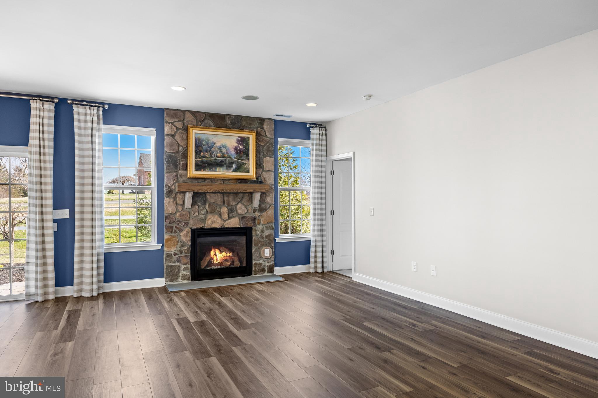 Welcome to an immaculate 2 bedroom with loft, 2 bath home with technology bonuses throughout, located in the highly sought-after 55+ community, Wildflowers at Medford. Built in 2014 and a former model home, this Ranch with open layout is a true standout with many thoughtful upgrades throughout! From the moment you arrive, you'll be drawn in by the home's charming curb appeal, highlighted by a beautifully designed hardscaped walkway and professionally maintained landscaping with lighting and a Rainbird irrigation system (complete with rain sensor). Step inside to find newer vinyl plank flooring flowing throughout most of the home, complemented by fresh paint and custom window treatments. The formal dining room sets the tone with elegant chair rail and crown molding, which is perfect for hosting holidays or intimate dinners. The heart of the home features a bright, open-concept kitchen and family room designed for both everyday living and entertaining. The kitchen offers white cabinetry, granite countertops, a stylish tile backsplash, stainless steel appliances, and double wall ovens. A center prep island with pendant lighting offers seating for two, while recessed lighting and a touchless Moen faucet add both convenience and modern appeal. The adjacent breakfast area includes a pantry and sliding doors leading to a paver patio that is ideal for morning coffee or evening relaxation. The family room is warm and inviting, centered around a stunning stone accent wall with a gas fireplace and mantle, designed to accommodate a 60" TV with cable hookup and outdoor speakers. The spacious primary suite is a true retreat, light and bright, featuring a tray ceiling, crown molding, and two walk-in closets. The en-suite bath offers a double vanity and a beautifully appointed walk-in tile shower. A second bedroom and full, updated bathroom with a tiled tub/shower combo provide comfortable accommodations for guests. Upstairs, a versatile bonus area can be used as a home office, hobby space, or additional storage. The laundry room includes a utility sink and offers convenient access to the garage. Additional highlights include a built-in sound system (Primary Suite, Kitchen/Family Room, Patio), Hunter Douglas remote-operated blinds, Ring doorbell, fingerprint smart lock for added security and ease, sprinkler system, and sprinkler system. Enjoy peaceful outdoor living with a private backyard that backs to protected Green Acres, along with access to a nearby walking trail, perfect for enjoying nature right outside your door. This is the lifestyle you've been waiting for. An absolute 10!