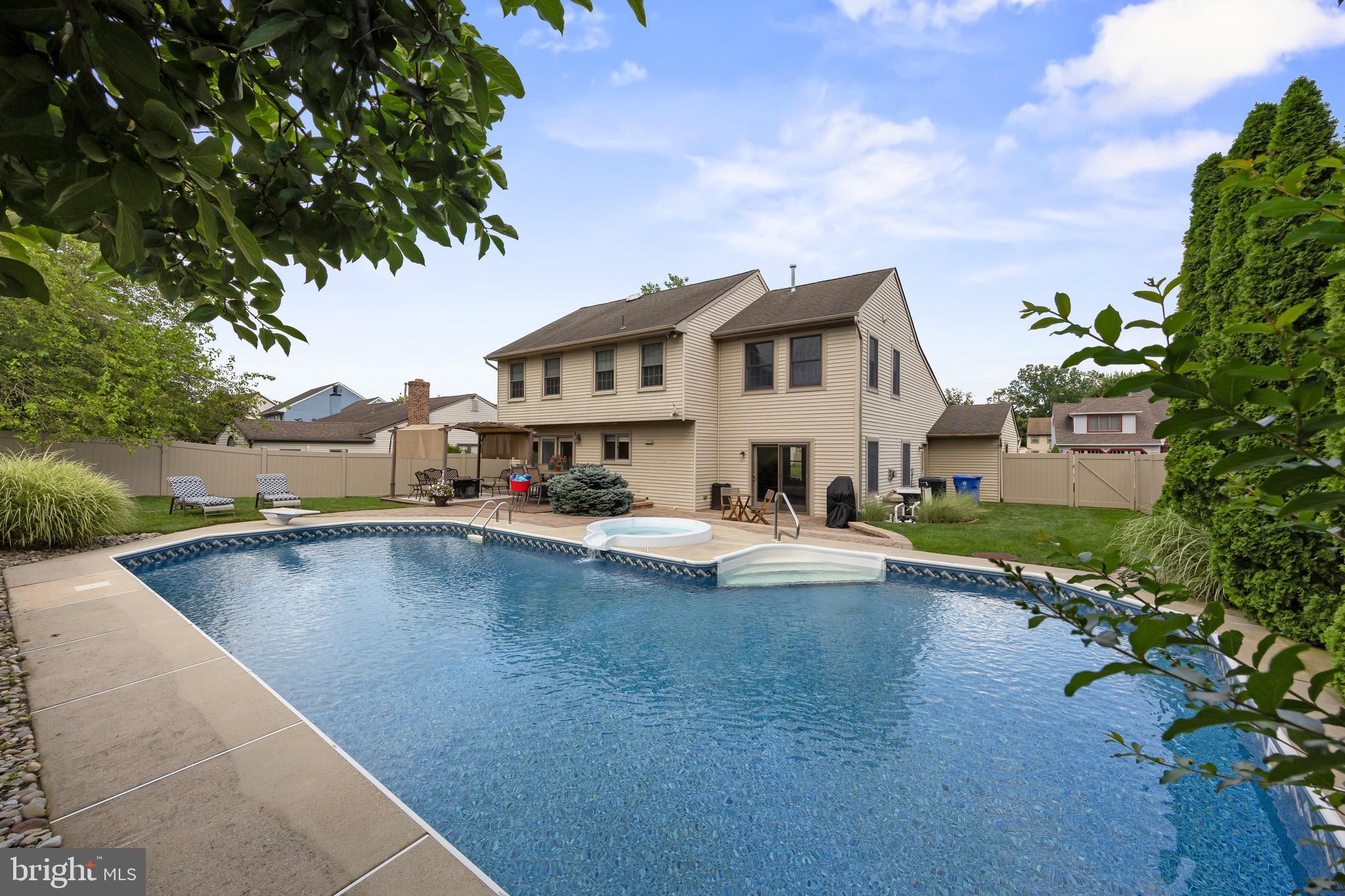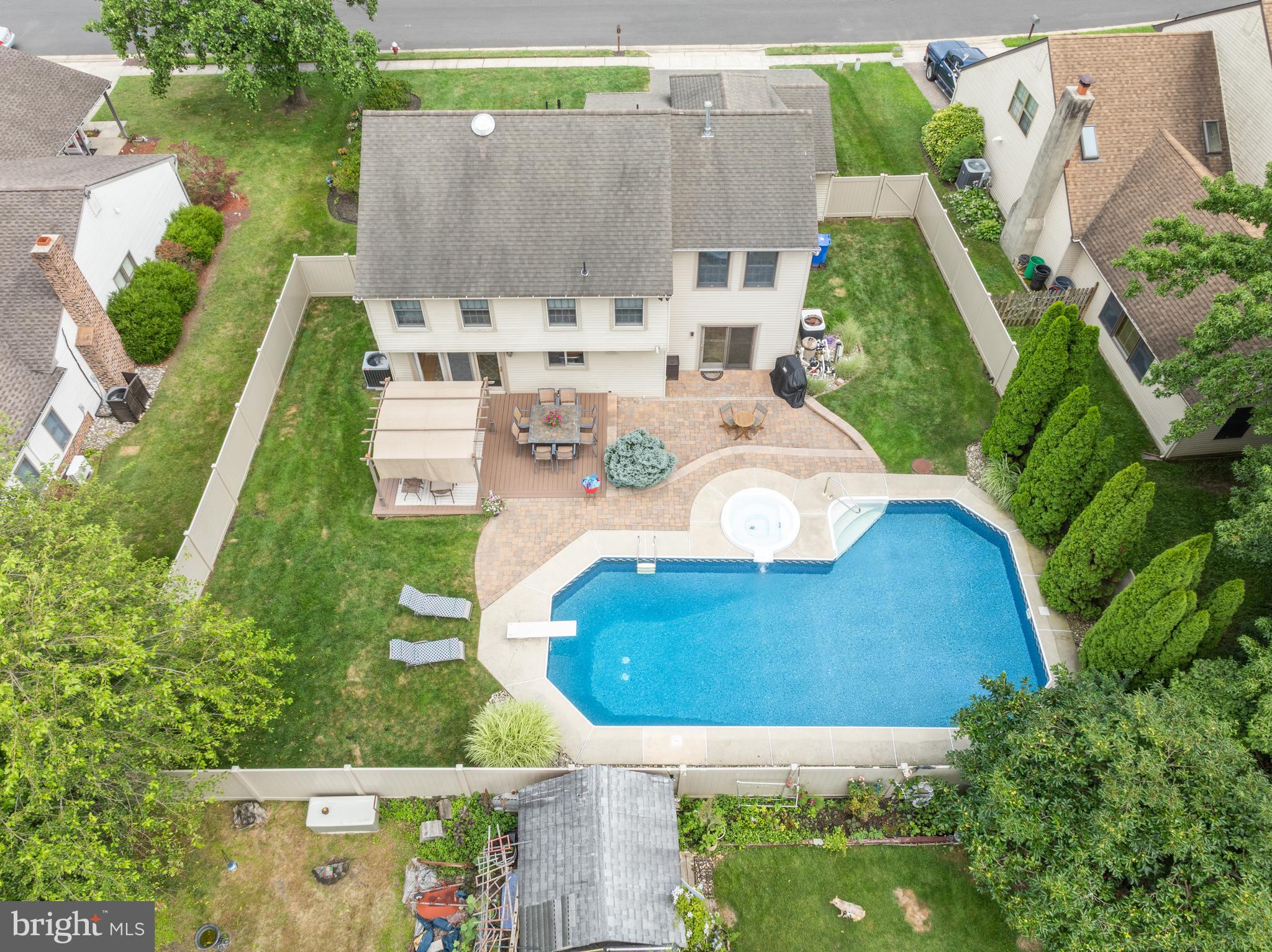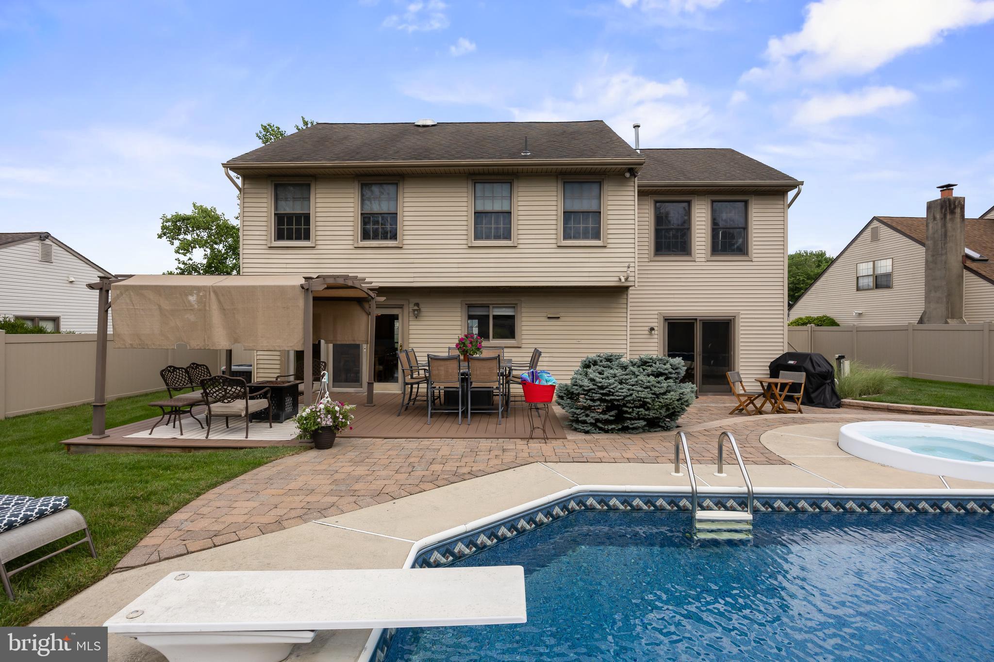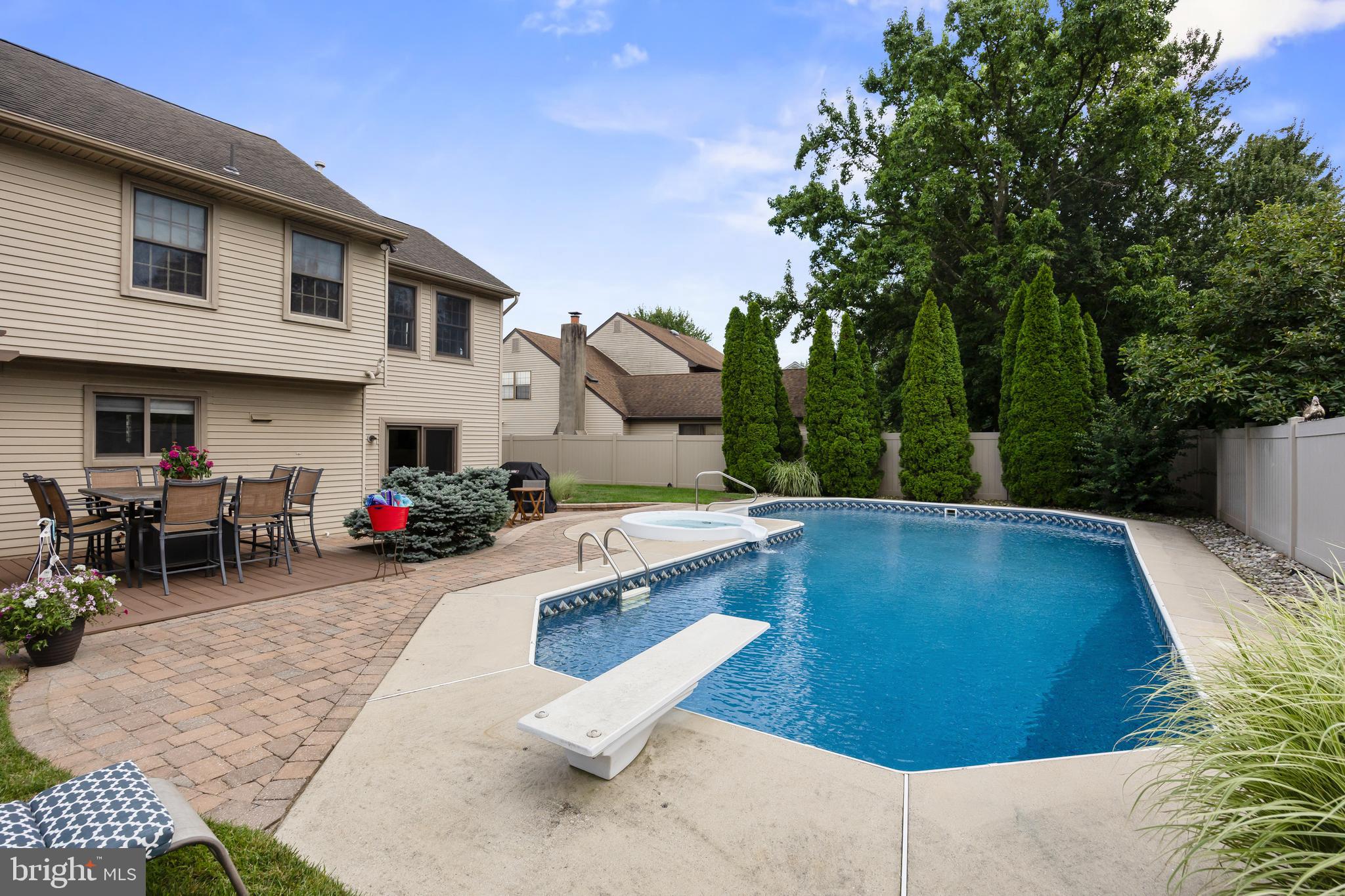 ****OPEN HOUSE on Sunday, July 27th 1-3pm CANCELED**** Enjoy living in this beautifully maintained, EXPANDED 4 bedroom, 2.5 bath Colonial featuring a spacious Primary Suite addition and an entertainer's dream backyard with a sparkling in-ground pool and spa, all surrounded by a gorgeous paver patio and professional landscaping! Located in the desirable Birchfield community of Mt. Laurel, this special home is ready for its next homeowner to enjoy for years to come. From the moment you step inside, you'll notice the warm hardwood floors that flow seamlessly throughout the open-concept living, dining, and kitchen areas, complemented by recessed lighting throughout most of the first floor. Elegant columns define the living room, creating a graceful transition into the spacious dining area and updated kitchen--perfect for both everyday living and entertaining. The kitchen features wood cabinetry, a neutral tile backsplash, a large center island with seating for three, a reverse osmosis water hookup, and stainless steel appliances (refrigerator, microwave, and dishwasher all approximately 3 years old). You'll also enjoy the convenience of a double oven and flat-top stove, with a gas line available if you prefer to convert. An sliding door off the dining area leads to a large deck and a stunning paver patio that wraps around your private in-ground pool and spillover spa (installed in 2007), making this backyard an entertainer's paradise! Adjacent to the kitchen is the cozy family room, offering additional space to relax with a gas fireplace, included surround sound, and Anderson sliders leading outside. The garage has been thoughtfully converted into a versatile bonus room--ideal for a home gym, playroom, or rec room--with an adjacent storage area to keep everything organized. The side entrance mudroom area was formerly the laundry room, and hookups are still available if you prefer laundry on the first floor. Upstairs, the expanded Primary Suite features a sitting area or home office, a large walk-in closet, and access to the full bathroom. Three additional generously sized bedrooms and an updated hall bath complete the second level. Outside, enjoy both privacy and function with a newer 6-foot vinyl fence, a sparkling in-ground pool, a spa, and plenty of space to lounge or entertain on the deck and patio. Additional features include mostly newer windows throughout (excluding the living room), a dual-zone HVAC system with one unit approximately 2 years old, a hot water heater approximately 6 years old, and a pool that ranges from 3 to 8 feet deep with a liner that was replaced about 2 years ago. The $101 monthly association fee includes lawn care and common area maintenance, along with access to community amenities such as a fitness center, pool, and tennis courts. Don't miss the opportunity to make this beautiful home your own!
