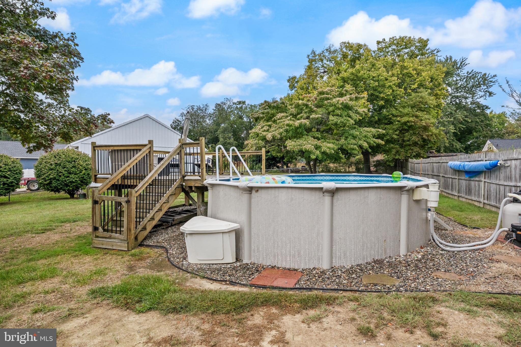 **Sunday, October 5th OPEN HOUSE CANCELED** Welcome home to this beautifully UPDATED 3 bedroom, newly remodeled full bath Ranch home, located on a premium lot in desirable Holly Brook! Bursting with charm, style, and modern upgrades, this move-in-ready gem offers incredible space to enjoy both inside and out. The unique property features an oversized detached 1.5-car garage with heat and running water - a rare find that's ideal for car enthusiasts, hobbyists, or anyone in need of a versatile year-round workshop! MANY possibilities and at the very least, you're provided with ample storage. Step inside and fall in love with the open-concept living and dining room, where gleaming hardwood floors, a large picture window, and a charming bay window flood the space with natural light. The updated kitchen boasts wood cabinetry, sparkling granite countertops, tile backsplash, and stainless steel appliances that include a high-end double-drawer dishwasher. Off the kitchen, a tile-floored bonus room makes the perfect home office, playroom, or den, and opens to the covered EP Henry patio for seamless indoor-outdoor living. Down the hall, you'll find three comfortable bedrooms and the fully remodeled bathroom featuring a double-sink vanity, upgraded mirror with built-in lighting, and additional sleek modern finishes, plus the convenience of a laundry closet off the primary bedroom. The backyard is fully fenced and designed for entertaining and everyday enjoyment! A storage shed offers even more storage, while the EP Henry brick-paved covered patio with ceiling fan and retractable awnings sets the stage for gatherings rain or shine. Cool off in the above-ground saltwater pool with deck, or unwind by the EP Henry fire pit, complete with rock seating for three. Additional highlights include: vinyl replacement windows (approx.10 yrs), roof (less than 10 yrs), hardwired security cameras, large storage shed, newer side garage door, and a partially floored attic for storage. Pride of ownership shines throughout every detail. Conveniently located near Rt. 38, Rt 206, I-295, and Fort Dix. Schedule your appointment today!